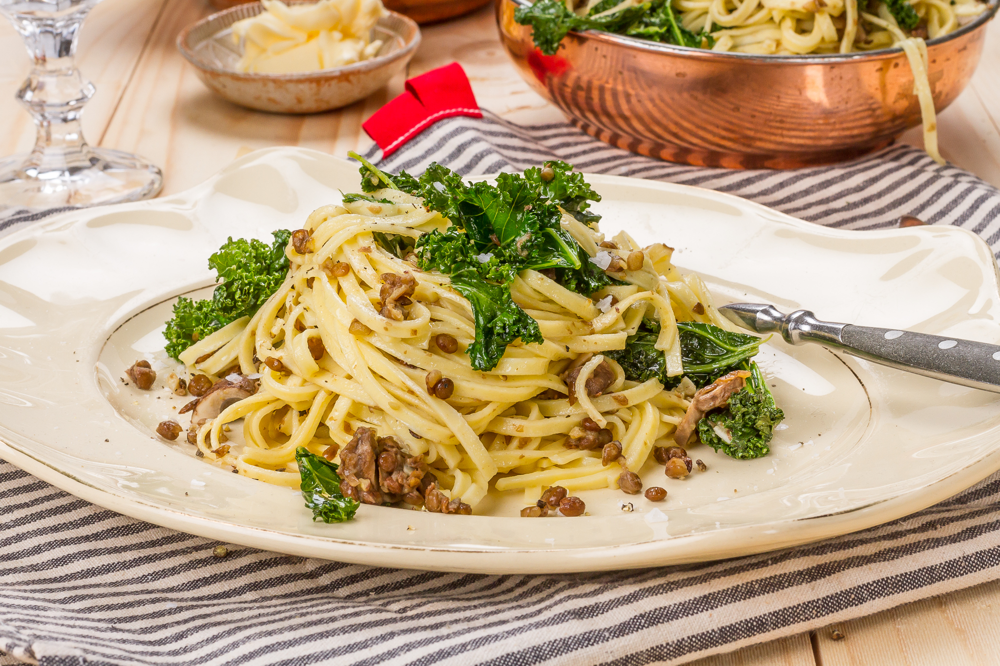 Smörfrästa linser, svamp & grönkål