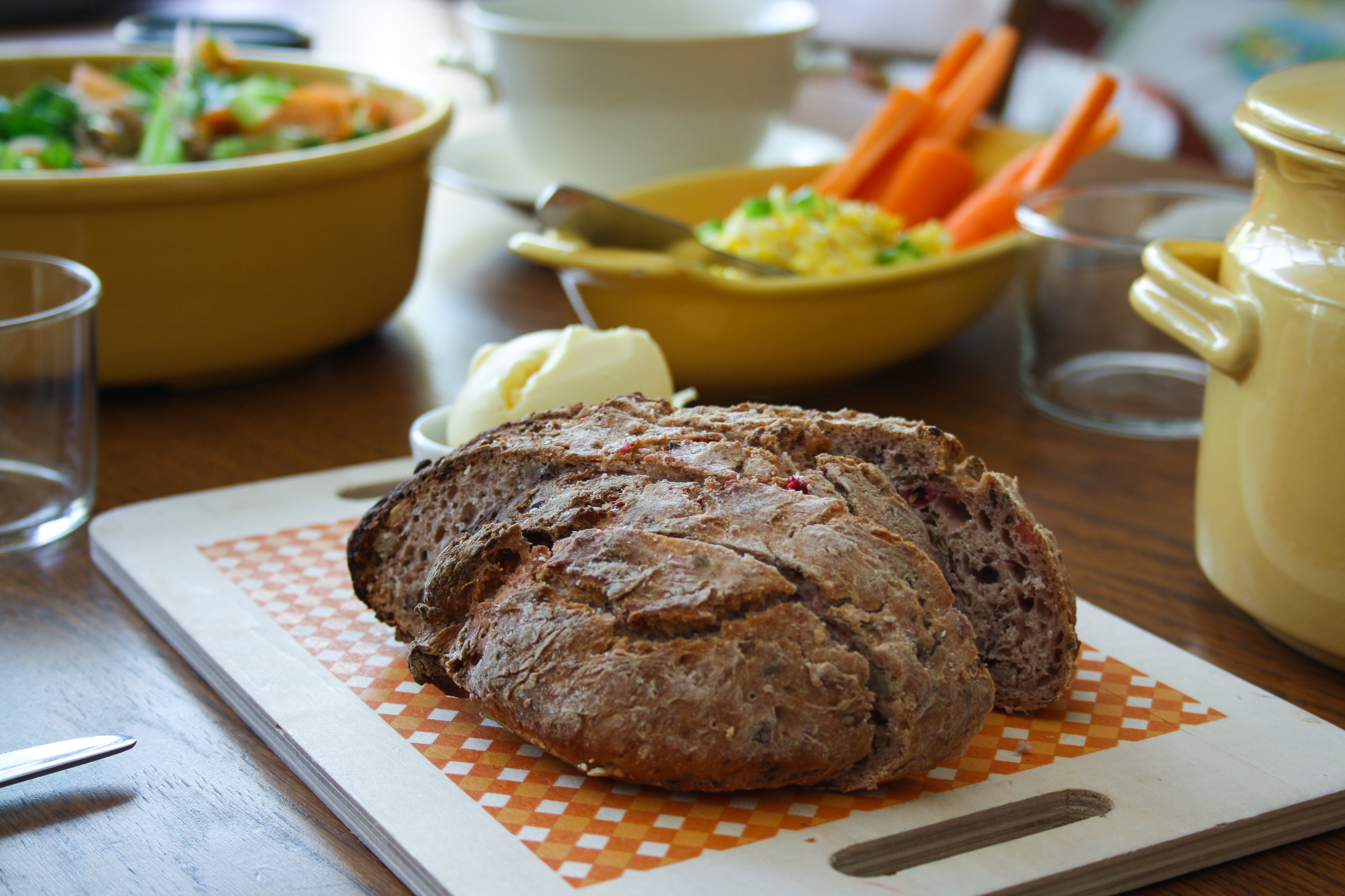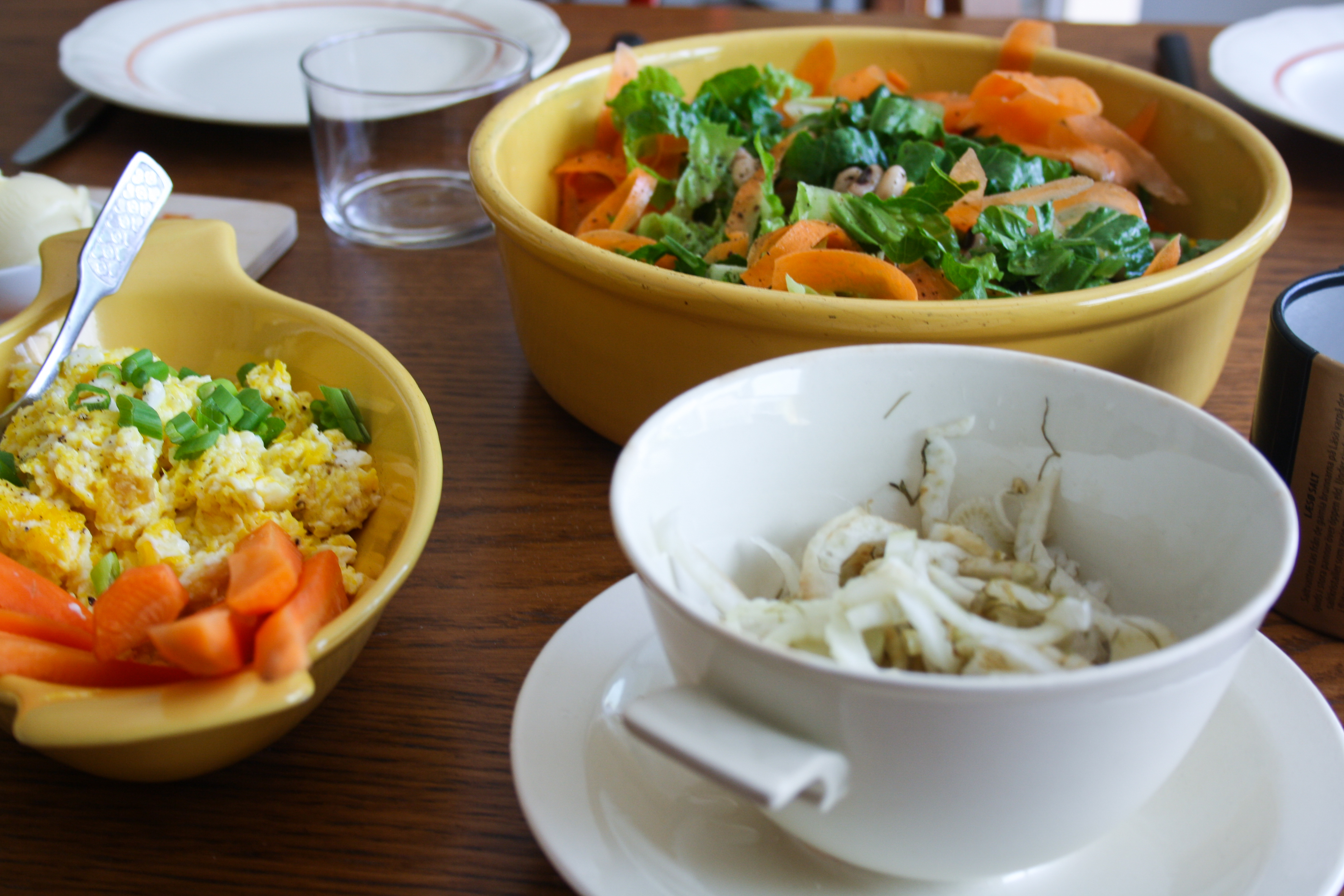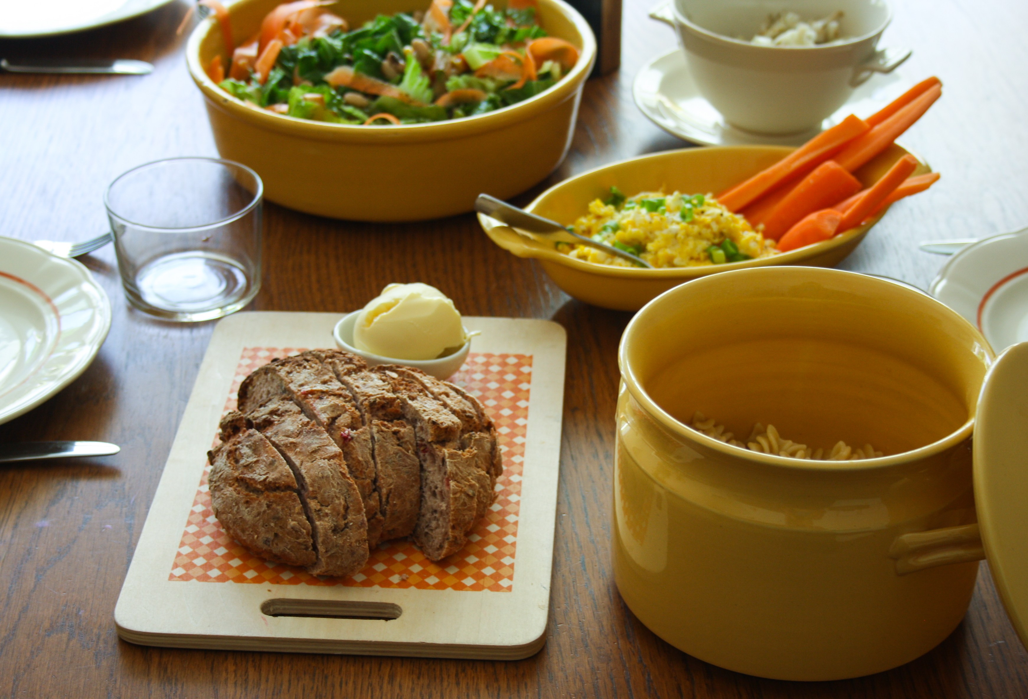 Här fanns pasta, lingonbröd, morotsstavar, äggröra, bönsallad och inlagd fänkål.