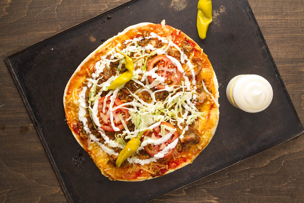 - Ta ut pizzan, riv över mer ost, toppa med sallad/grönt och ringla över kebabsås.