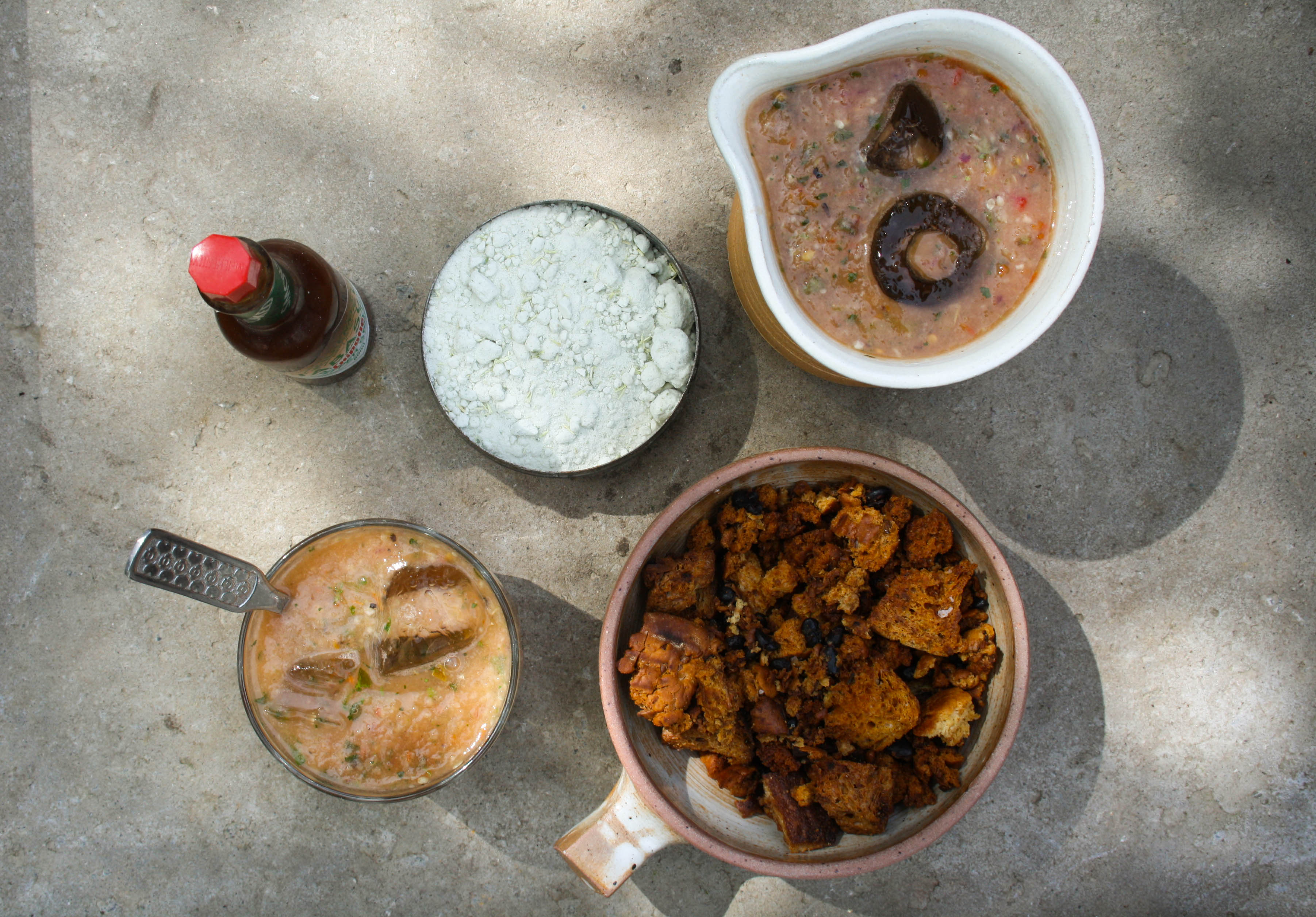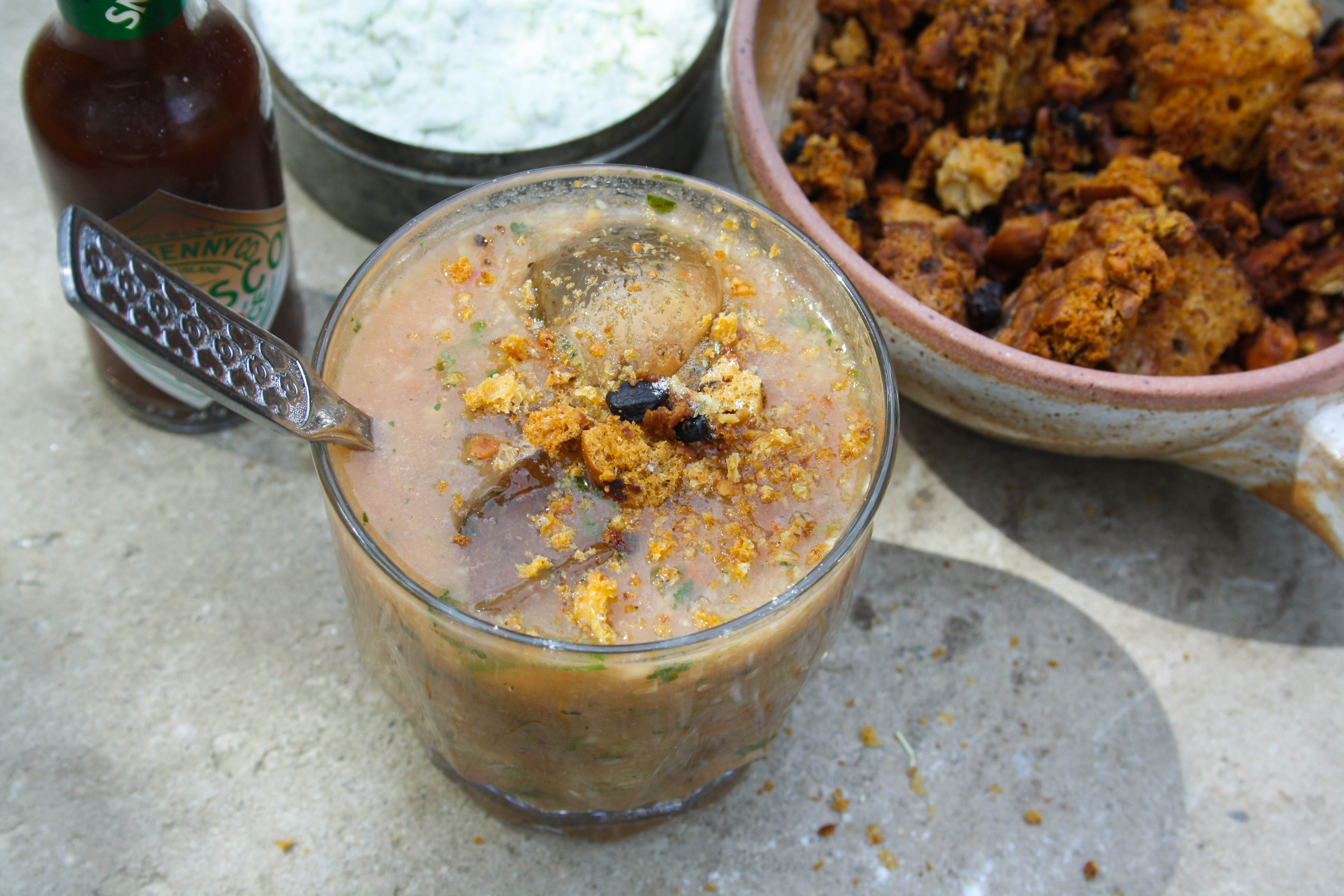 - Här har vi istället adderat lite extra smak med buljongtärning och kryddat extra med tomatsalt och Tabasco.