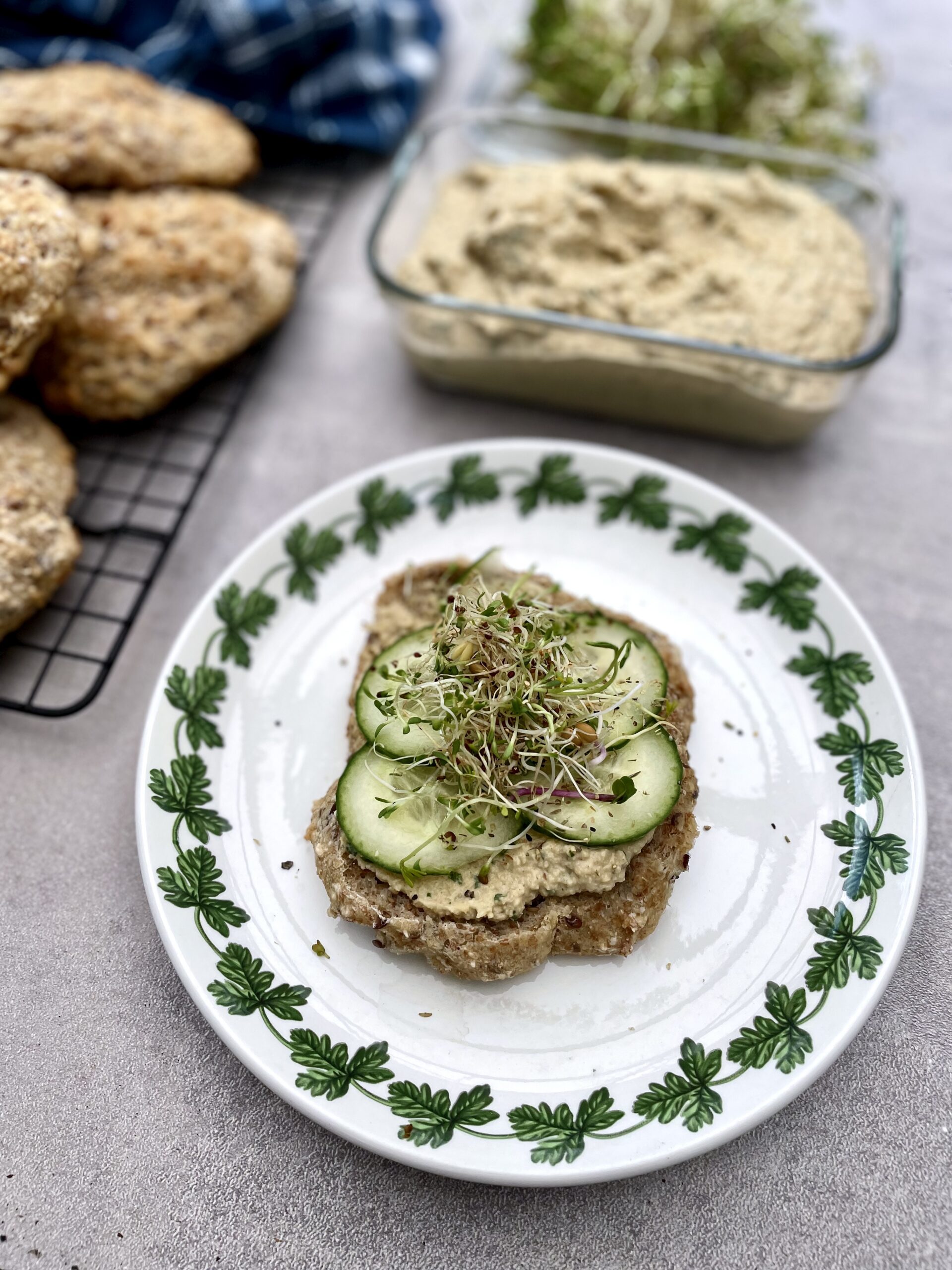 Tre favoriter – groddar, kalljäst bröd och hummus med rostade solrosfrön ❤︎