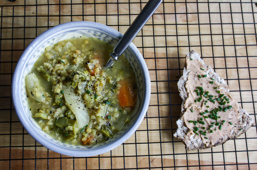 Här kommer dagens snabba, goda linssoppelunch. Och vad är det för något gött på knäckemackan undrar ni? Jo, det är en för jädra bra vegansk köpepastej som inte finns på marknaden riktigt ännu men som kommer. Lyckligt lottat har jag fått vara med och testa och smakråda.
