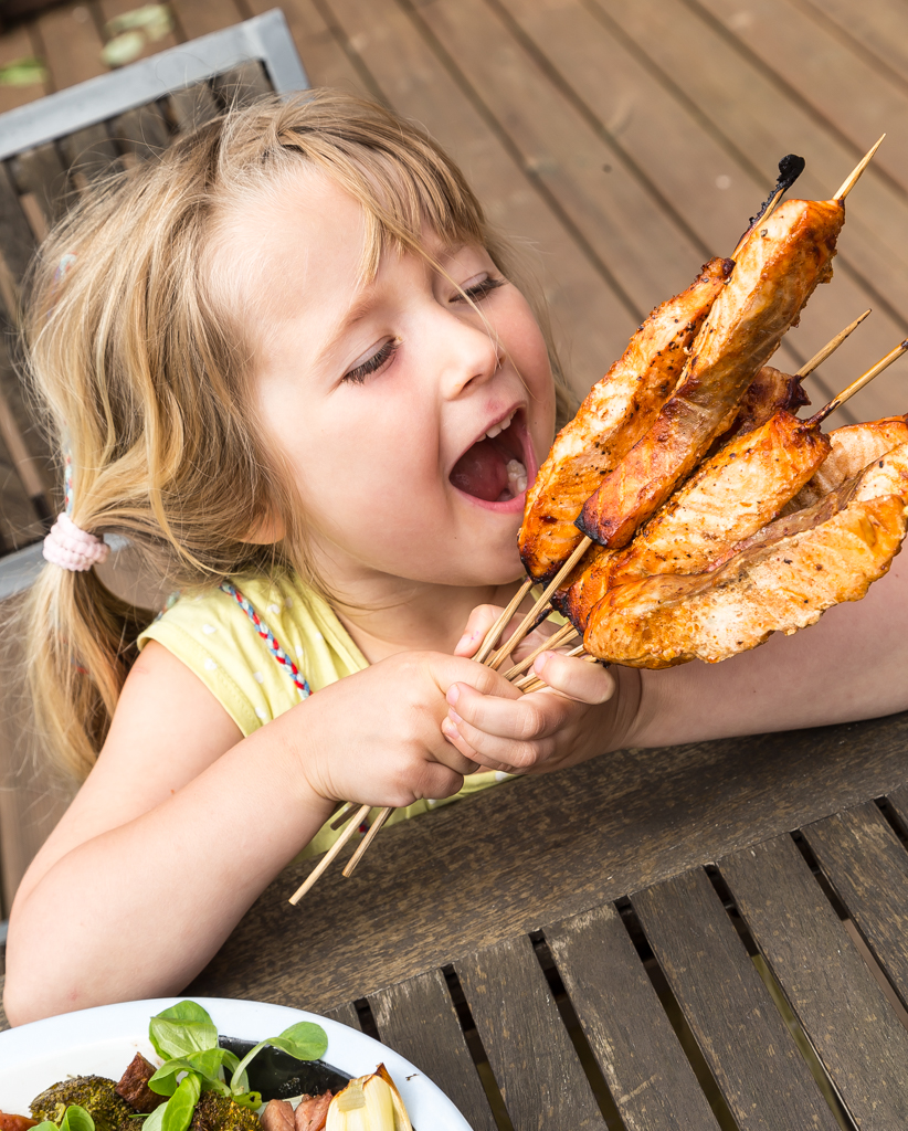 Vi gillar tydligen mat på spett. Det går alltid hem. Är det så enkelt att vi får äta med händerna då? För det är lite mekkigt att göra, blir inte alltid bättre men vi gillar det ändå. Det känns trevligt. ’