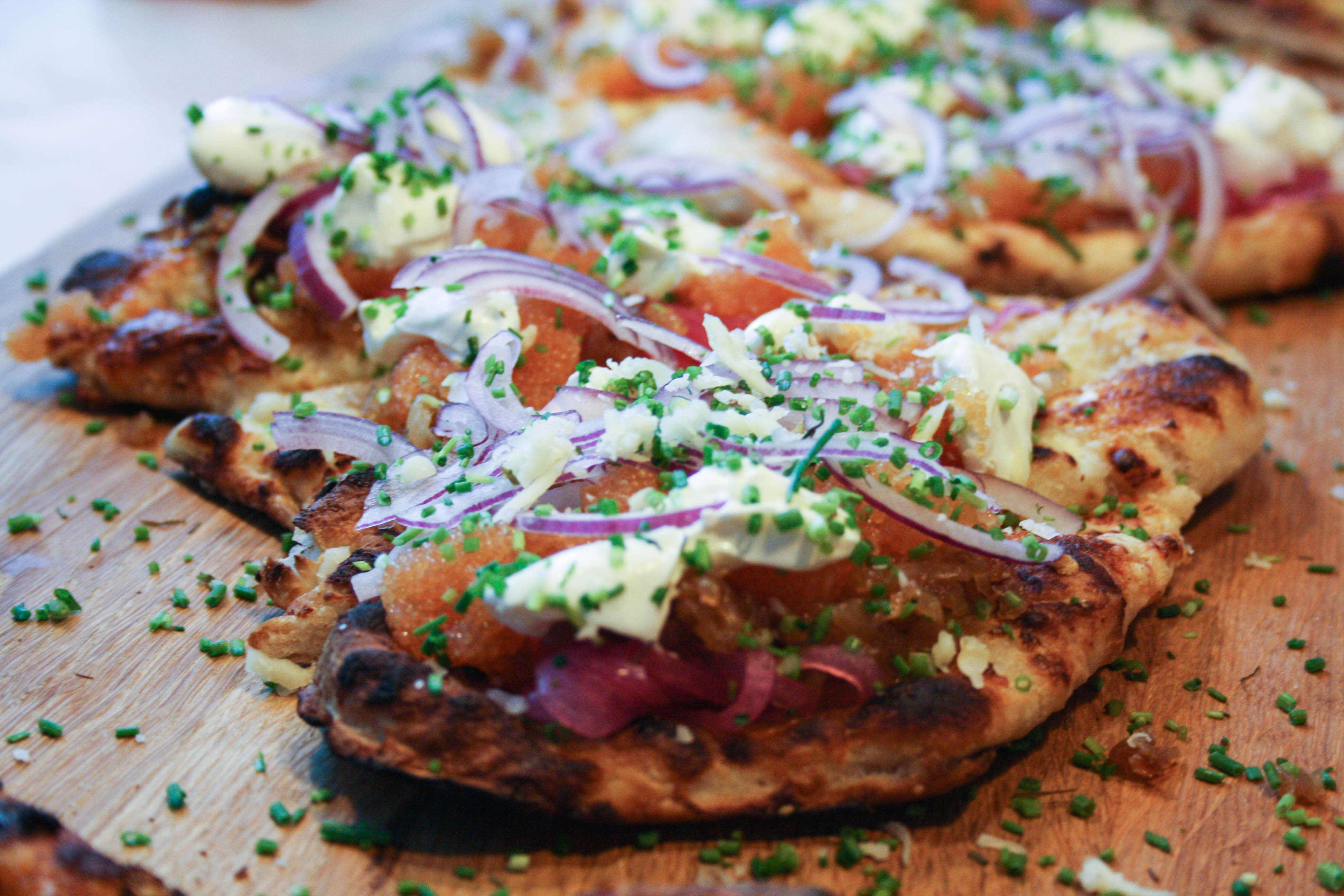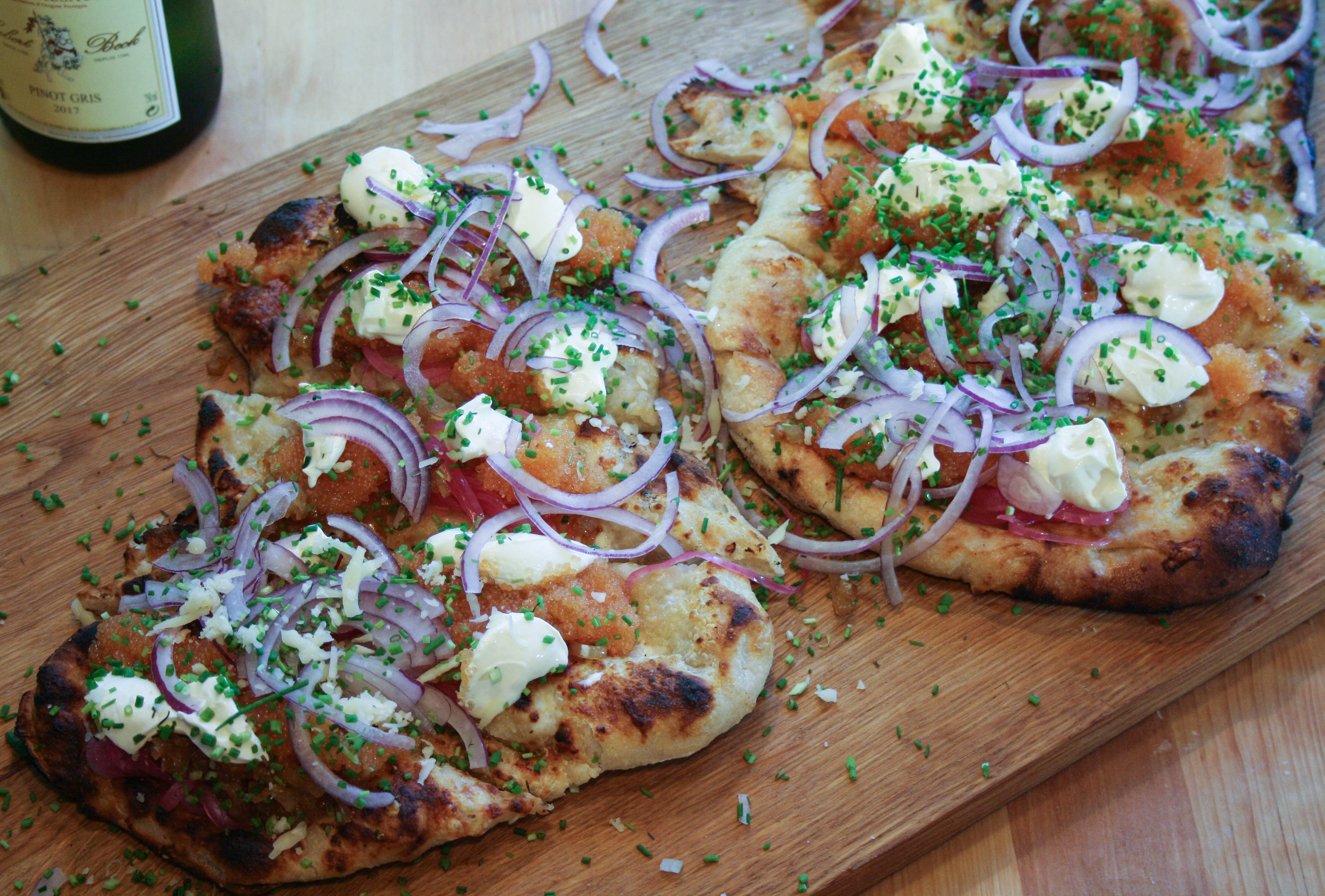 Vill ni ha en lyxig middag, men ändå hålla det enkelt och ganska mycket köksbänkshängigt. Que? Ni vet den sköna stämningen när man sitter på köksbänken, äter med händerna och dricker gott vin. Då är Löjromspizza en bra idé.