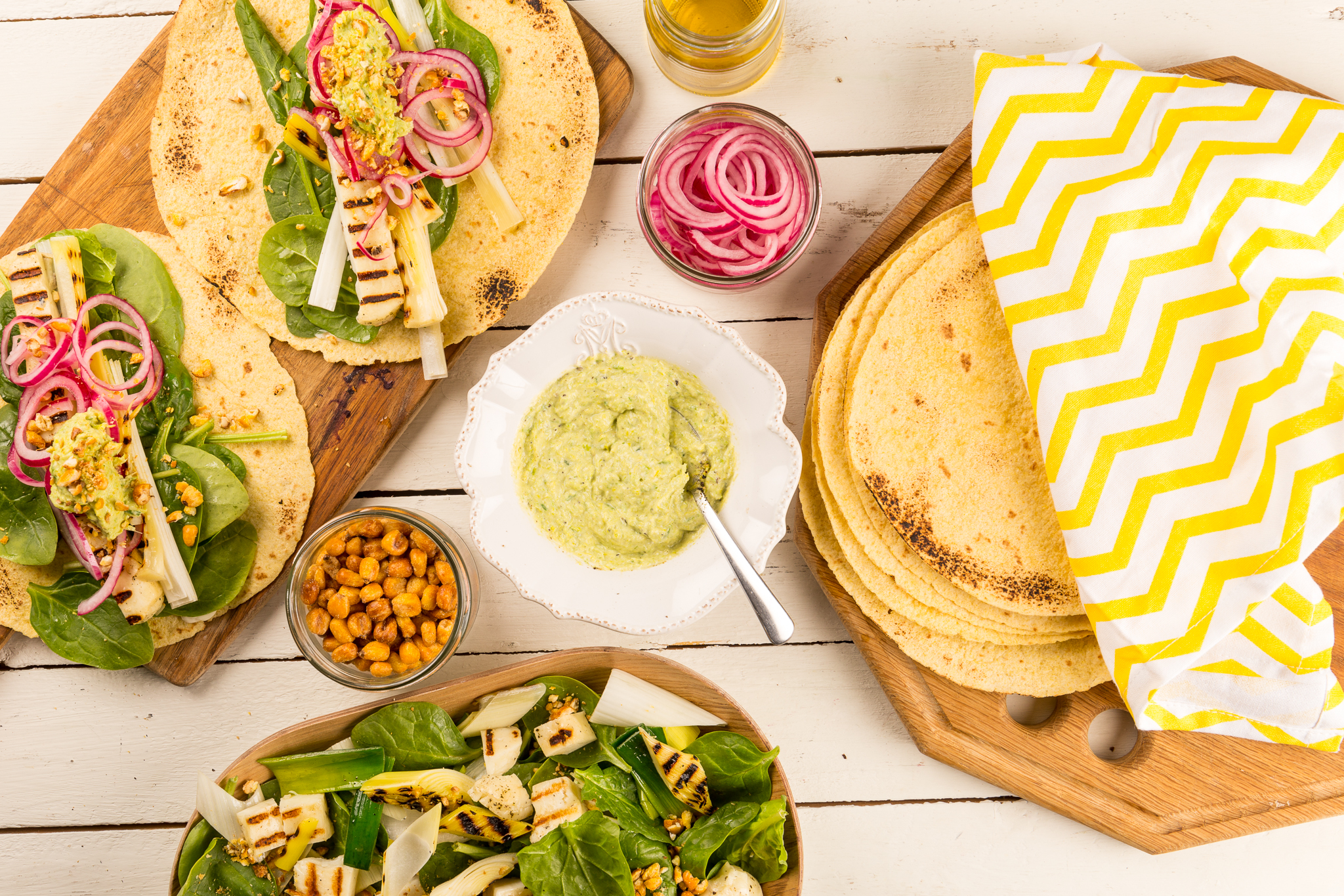 Majstacos med halloumi och grillad purjolöksmajonnäs