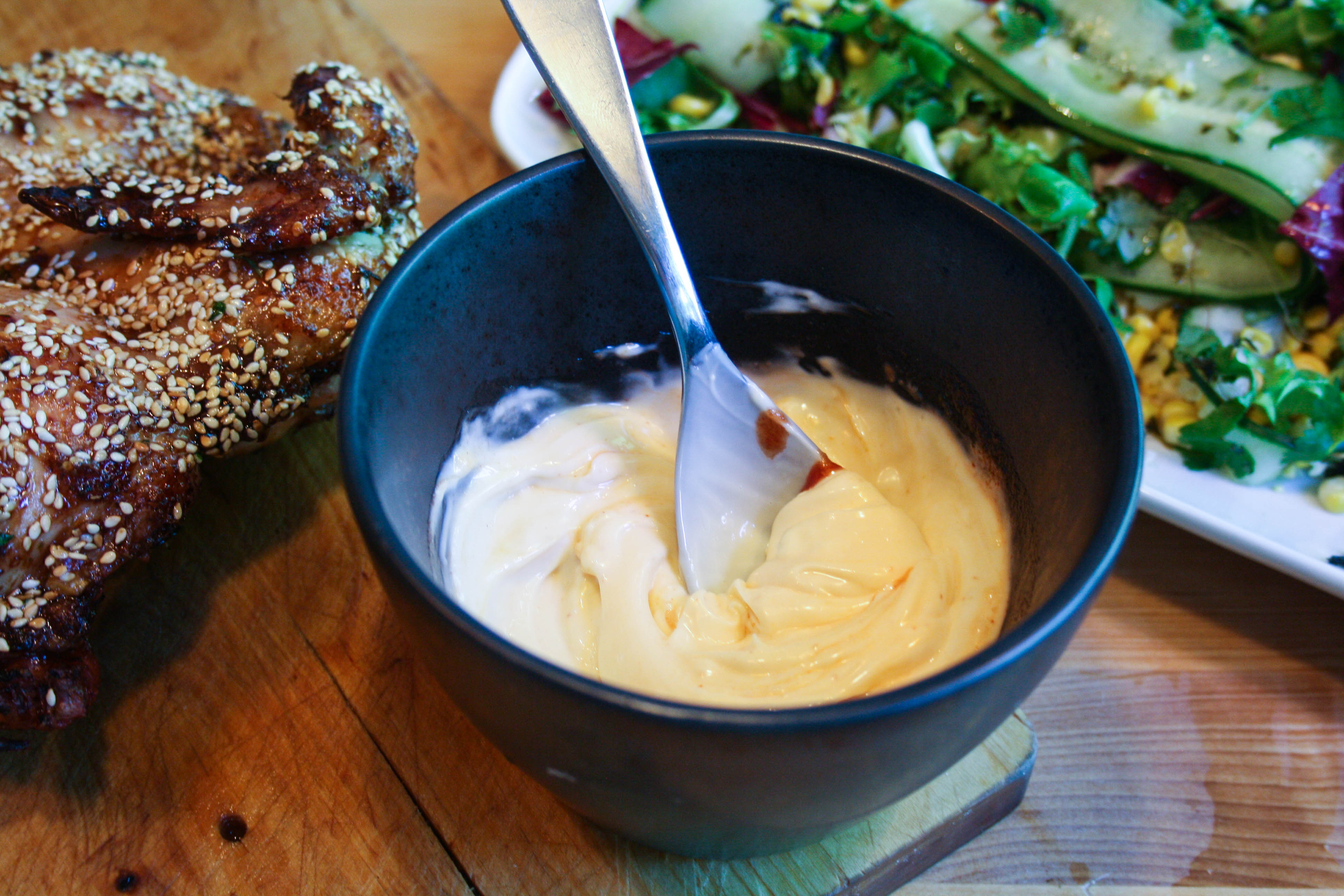 Misopasta är en bra grej att ha i kylen. Sätter god smak på mycket. Har ni nu inte det hemma så byt mot sesamolja, sriracha, lime, mandelsmör eller mixa samman majonäsen med rostade sesamfrön och lite flingsalt.