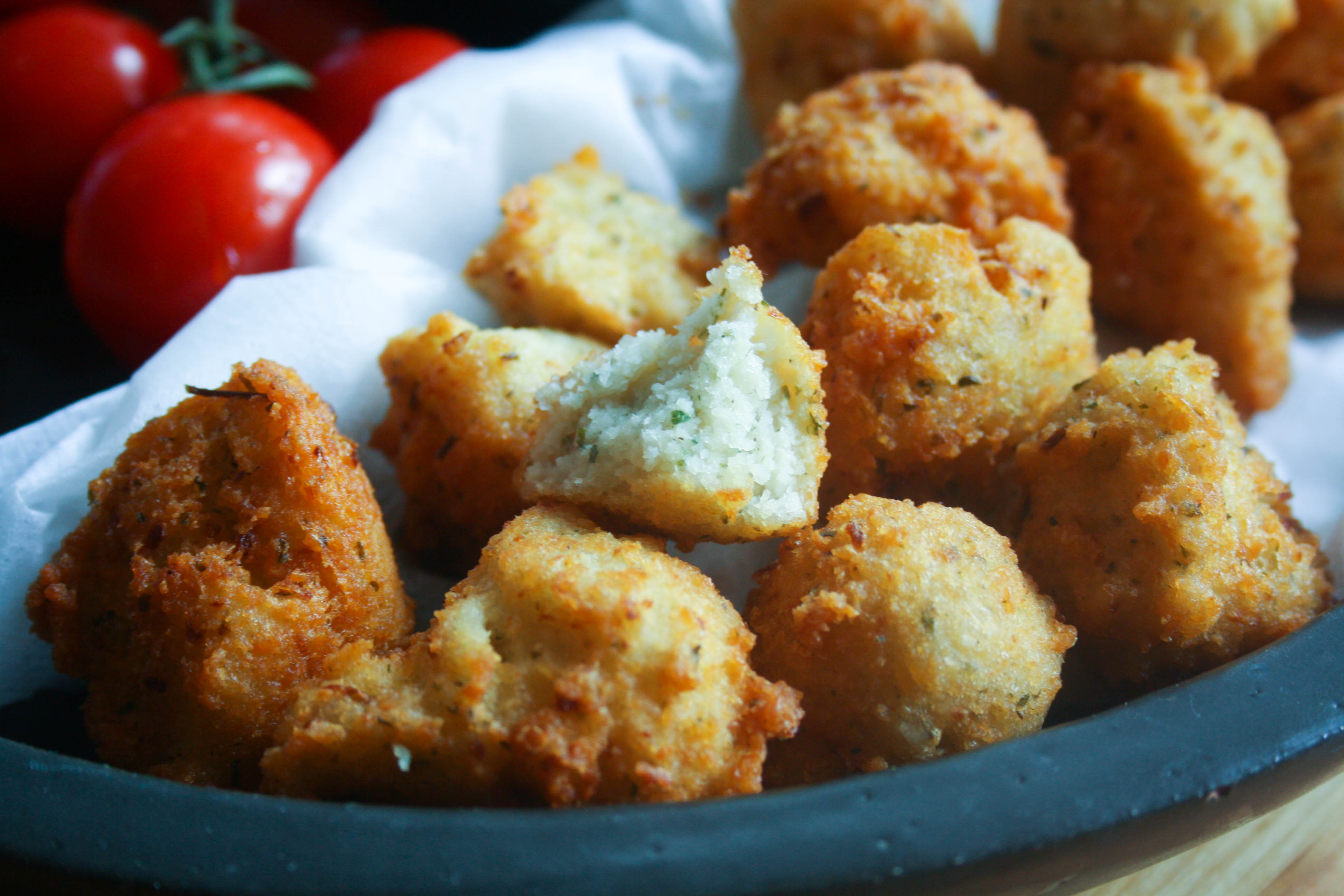 Klicka ner små klumpar av smeten med en sked och fritera tills de är gyllenbruna. Ta upp dem med hålslev och låt rinna av på hushållspapper. Strö över lite flingsalt.
