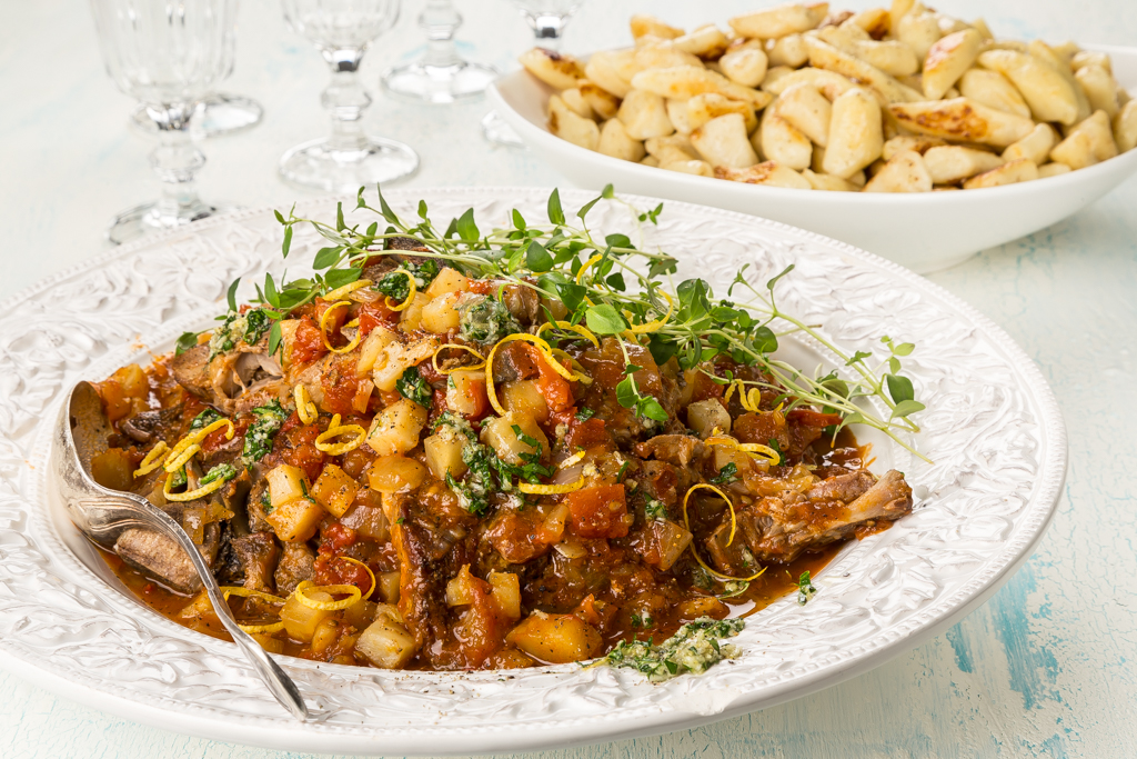 Osso buco är en italiensk klassiker. Namnet betyder just ben med hål i och det här med att använda benlägg i grytor – det ger otroligt mycket god smak.