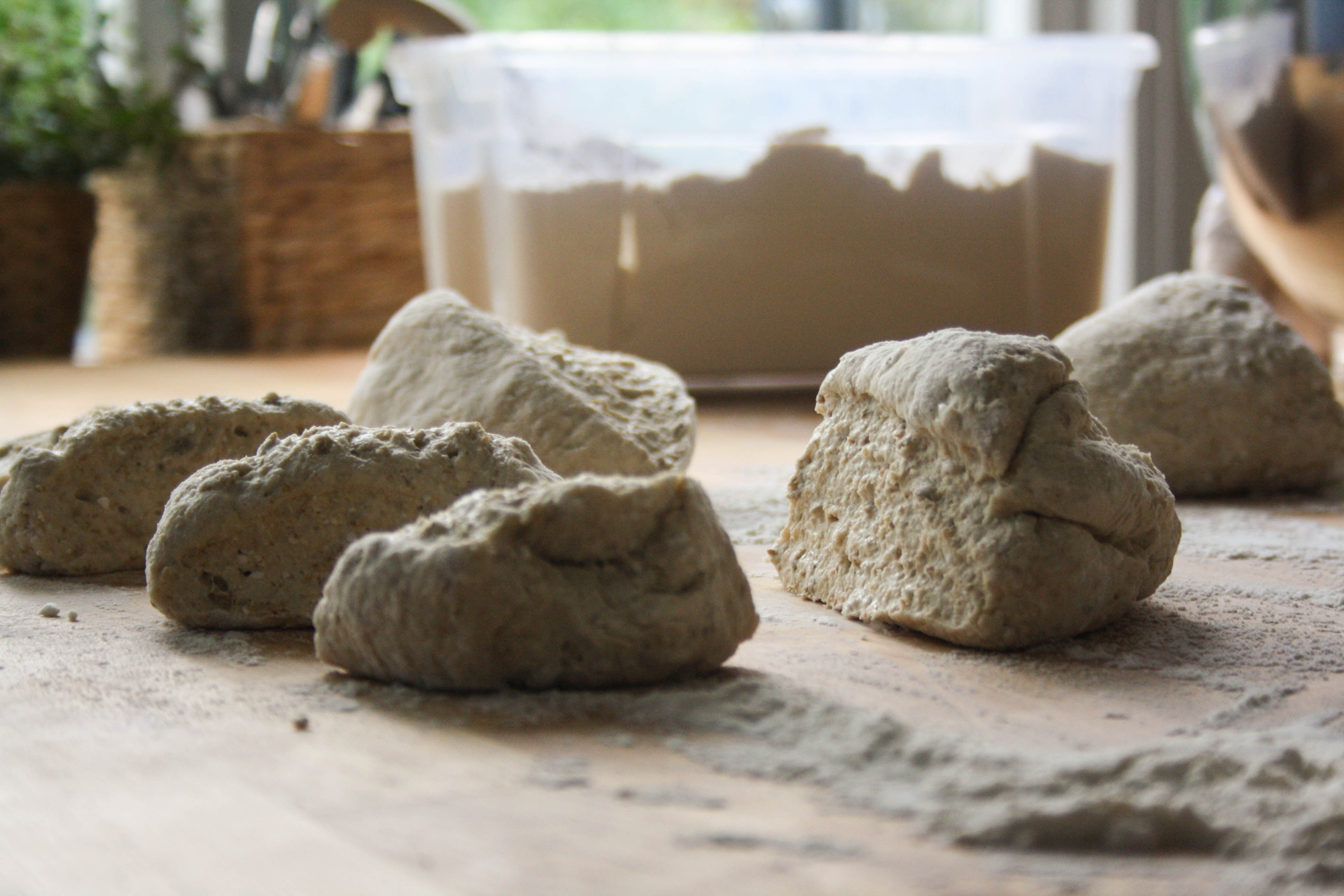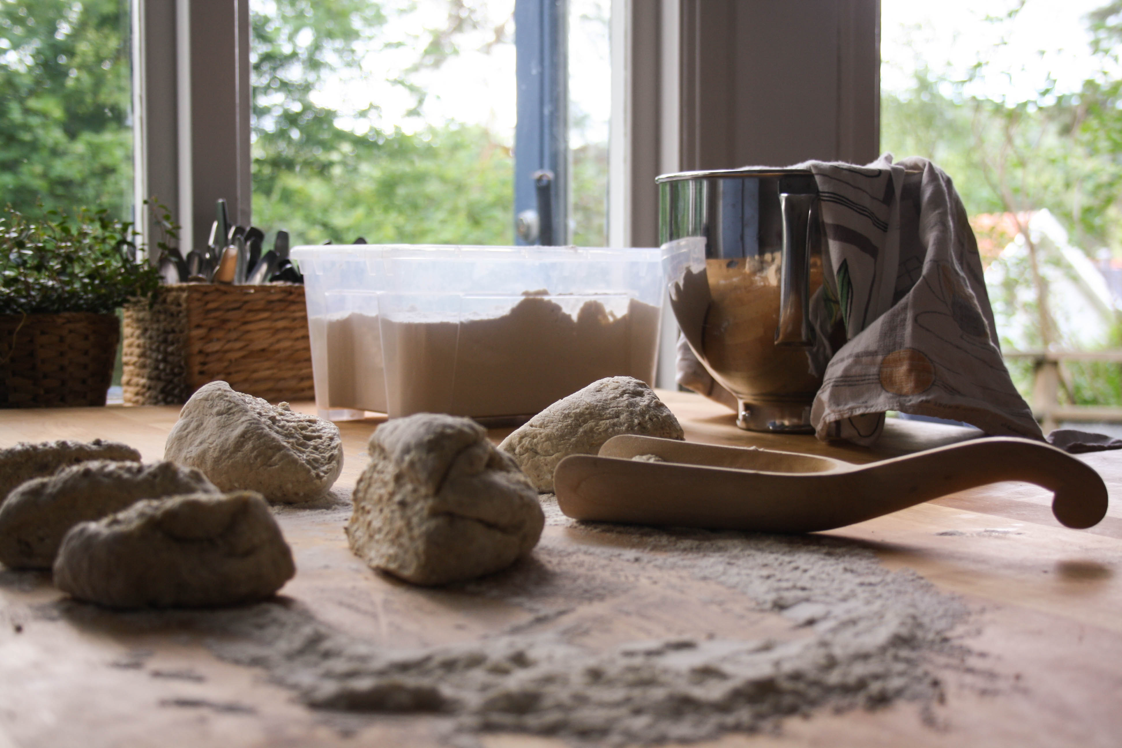 - Sen är en bra skopa, en bra degskrapa och en bra yta att knåda bra grejer.