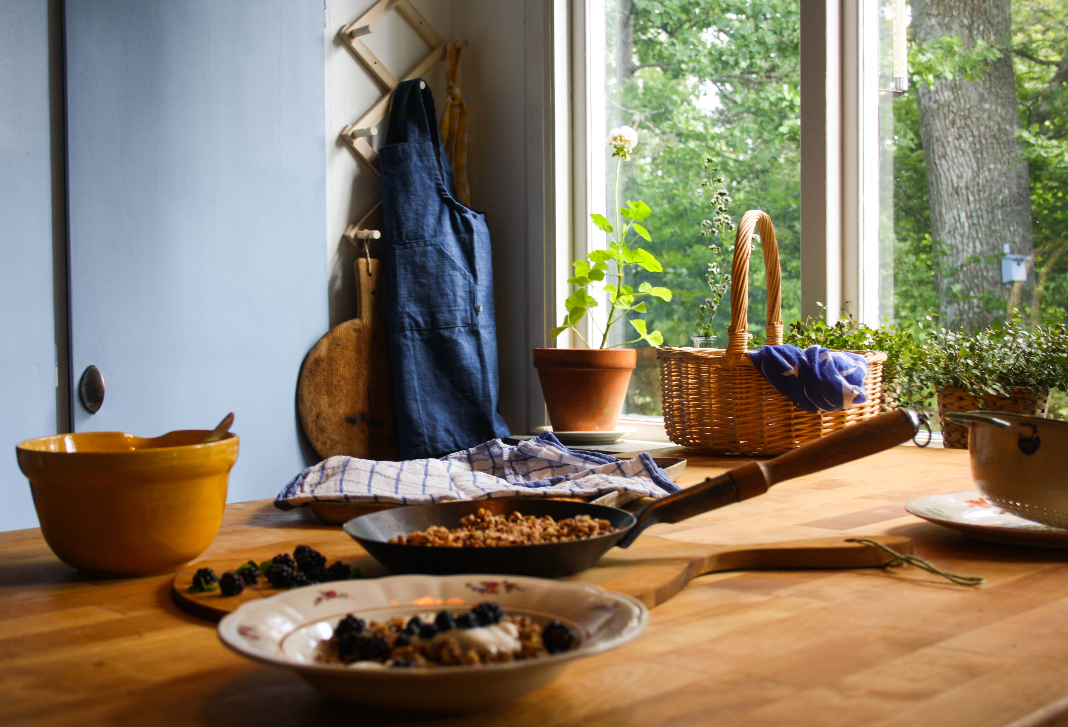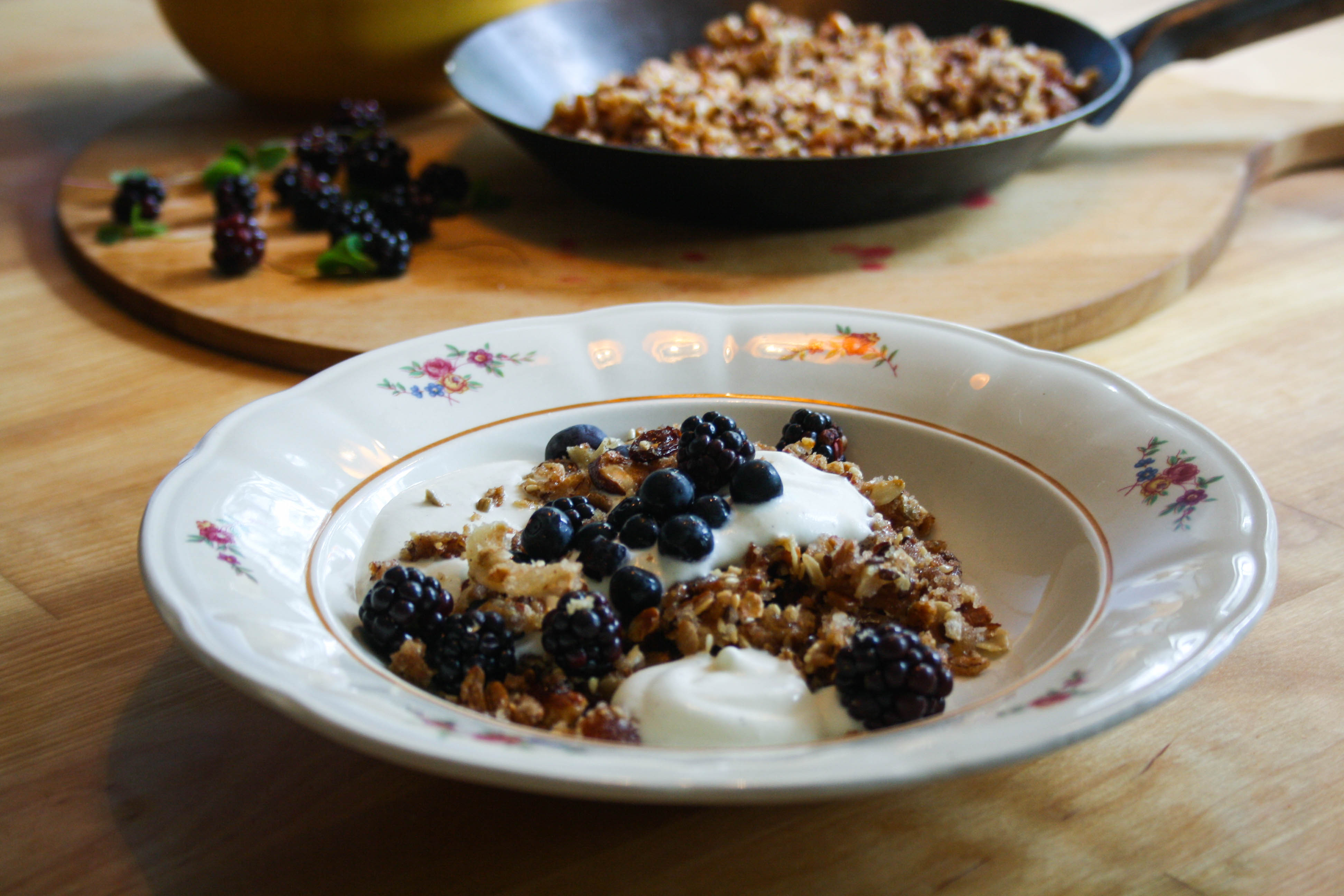 Eller HUSMANDESSERT. Den snabba desserten som kan göras på lite av varje. Denna äts mycket av hemma hos oss, framförallt nu när det växer fullt med bär och frukt i skog och trädgård.