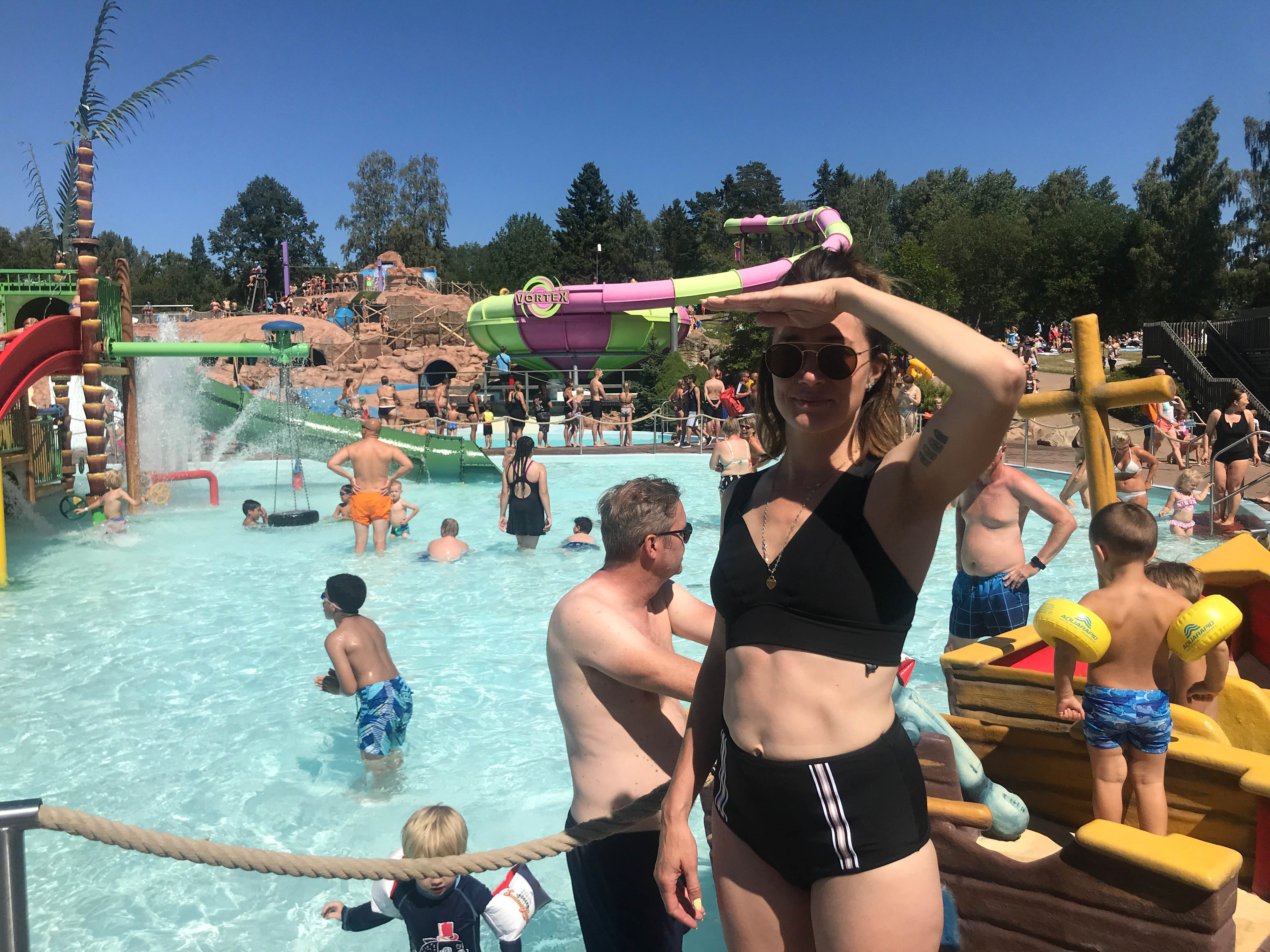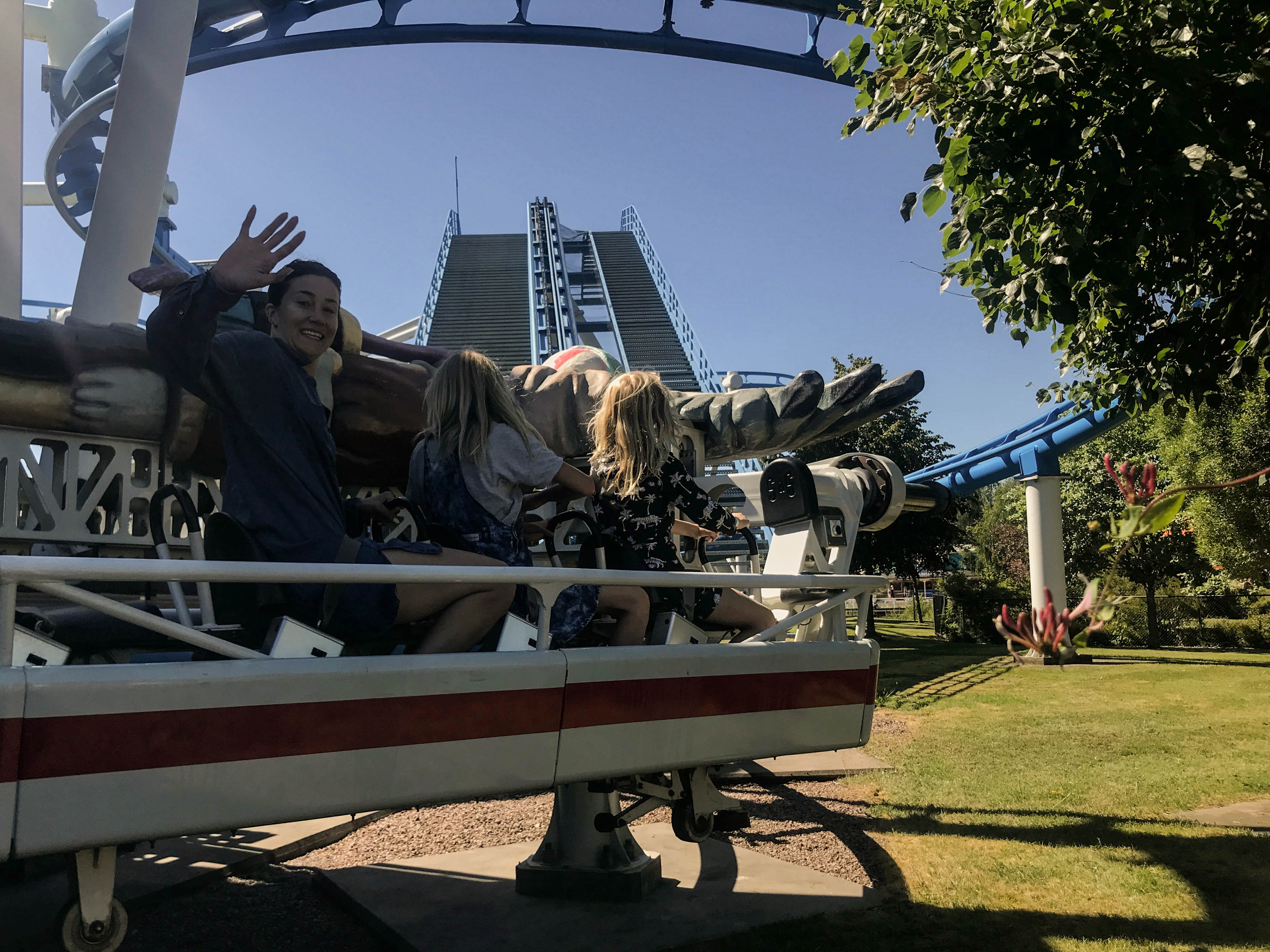 Det är bäst att vara ett gäng, helst någorlunda jämngamla barn (jämnlånga) så att de kan/får/vill åka samma saker. Man betalar en entré och sedan ingår allt (typ) och man får åka hur mycket man vill. Tranan (ovan) och Snäjkepitt (Snakepit) – våra bars favoriter.