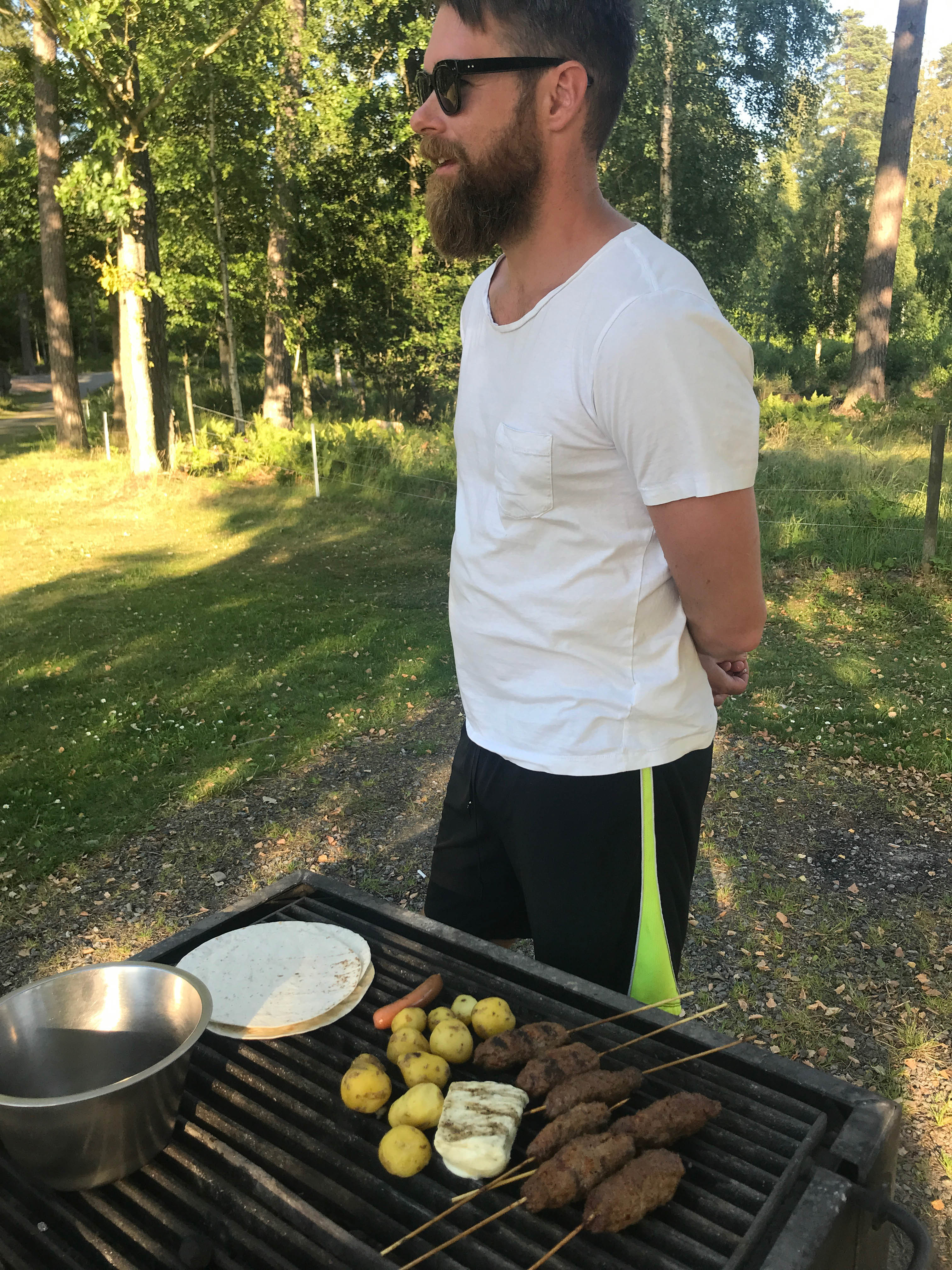 Barn fixade härproducerad, klimatsmart förrätt. Ett upplägg som skulle kunna platsa på Noma. Föräldrar grillade klimatsmart på matrester, kanske inte Noma-material men ack så gott.
