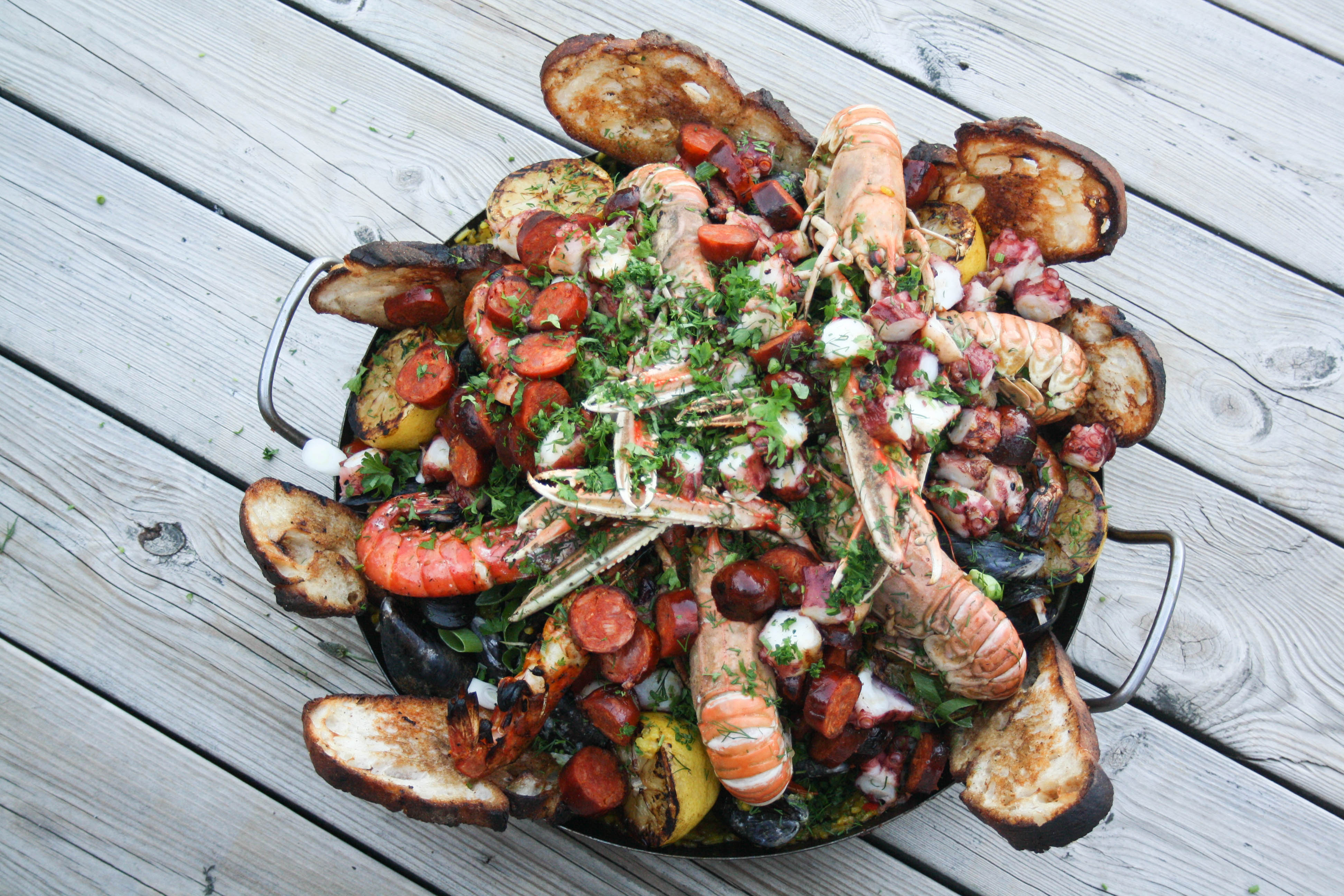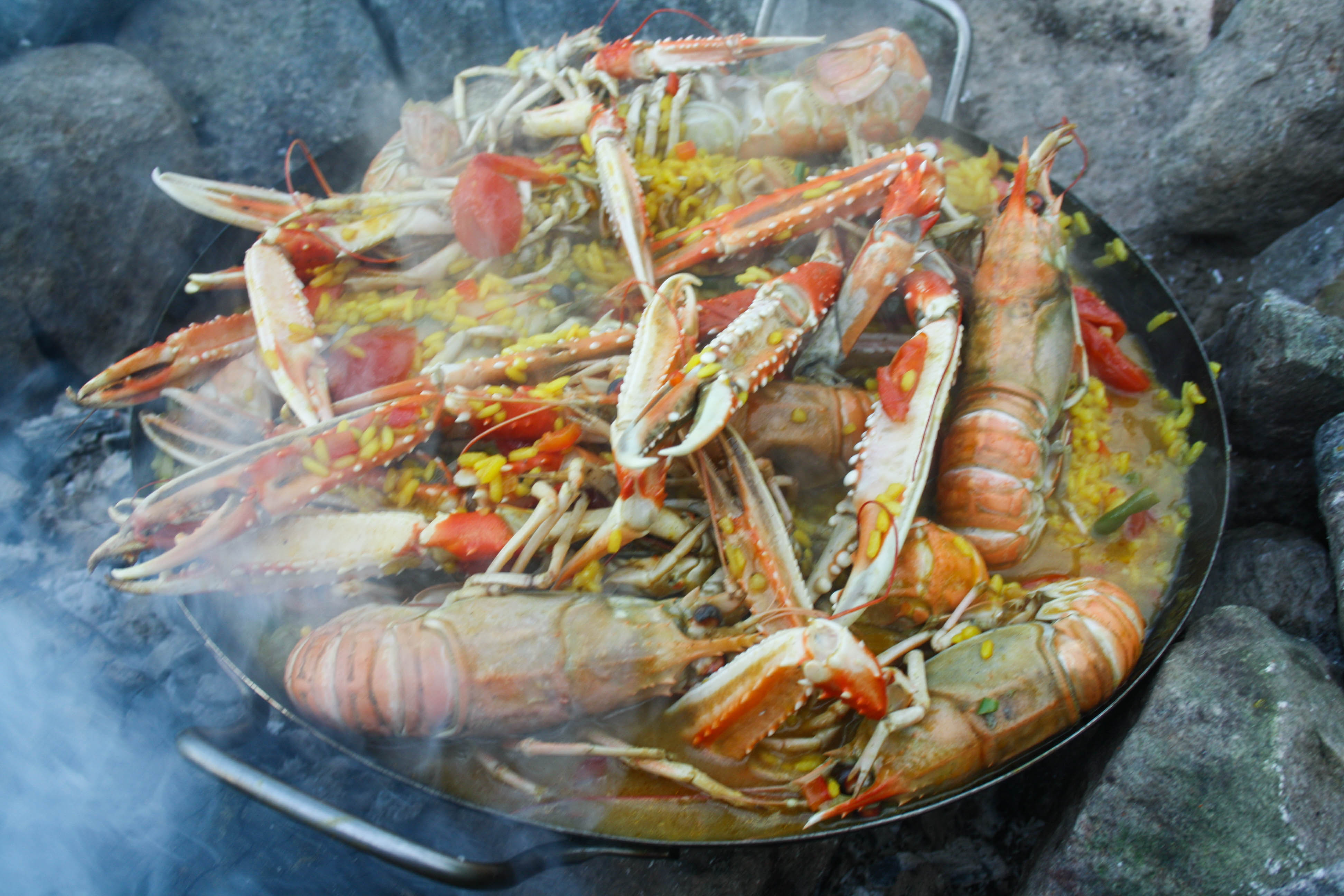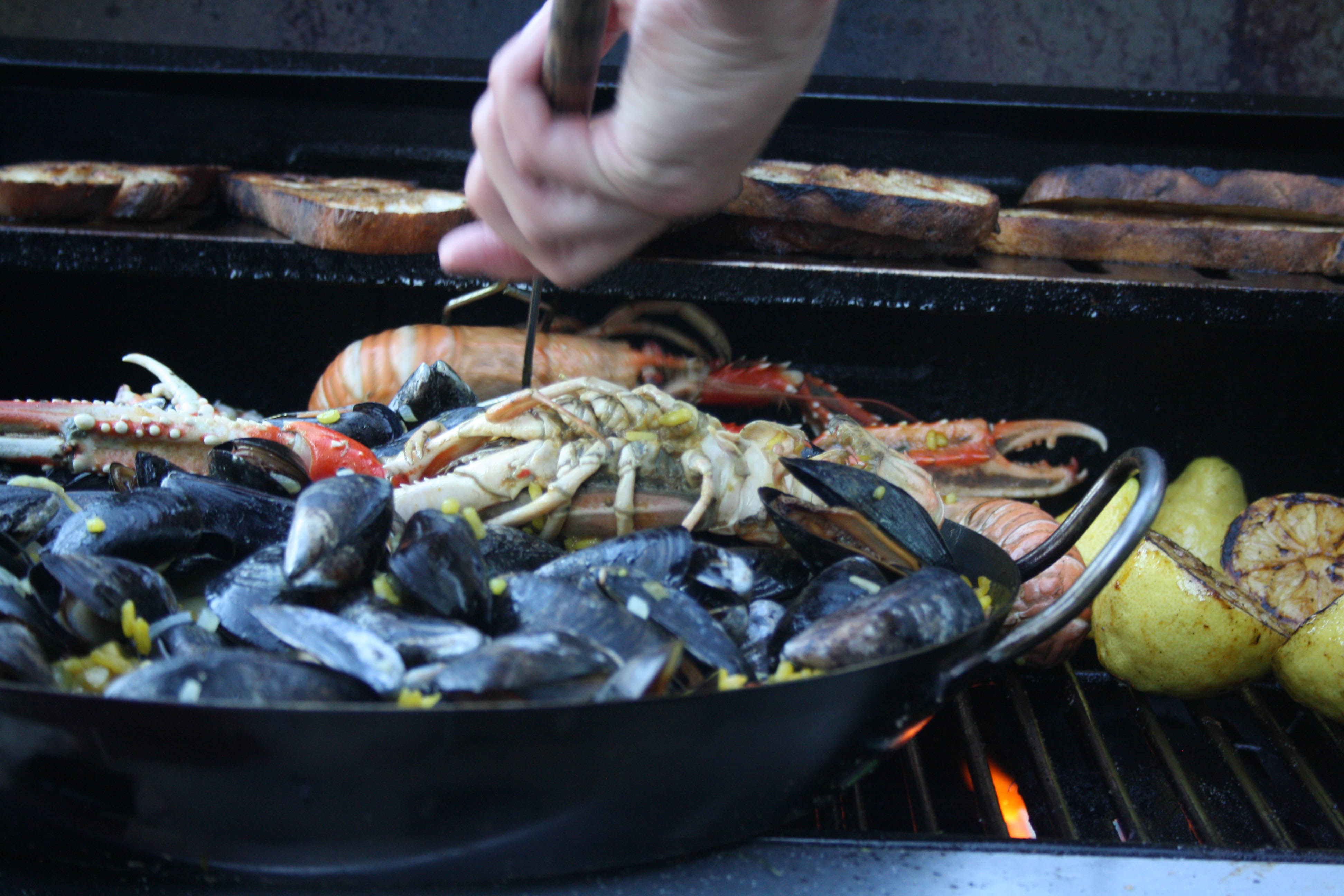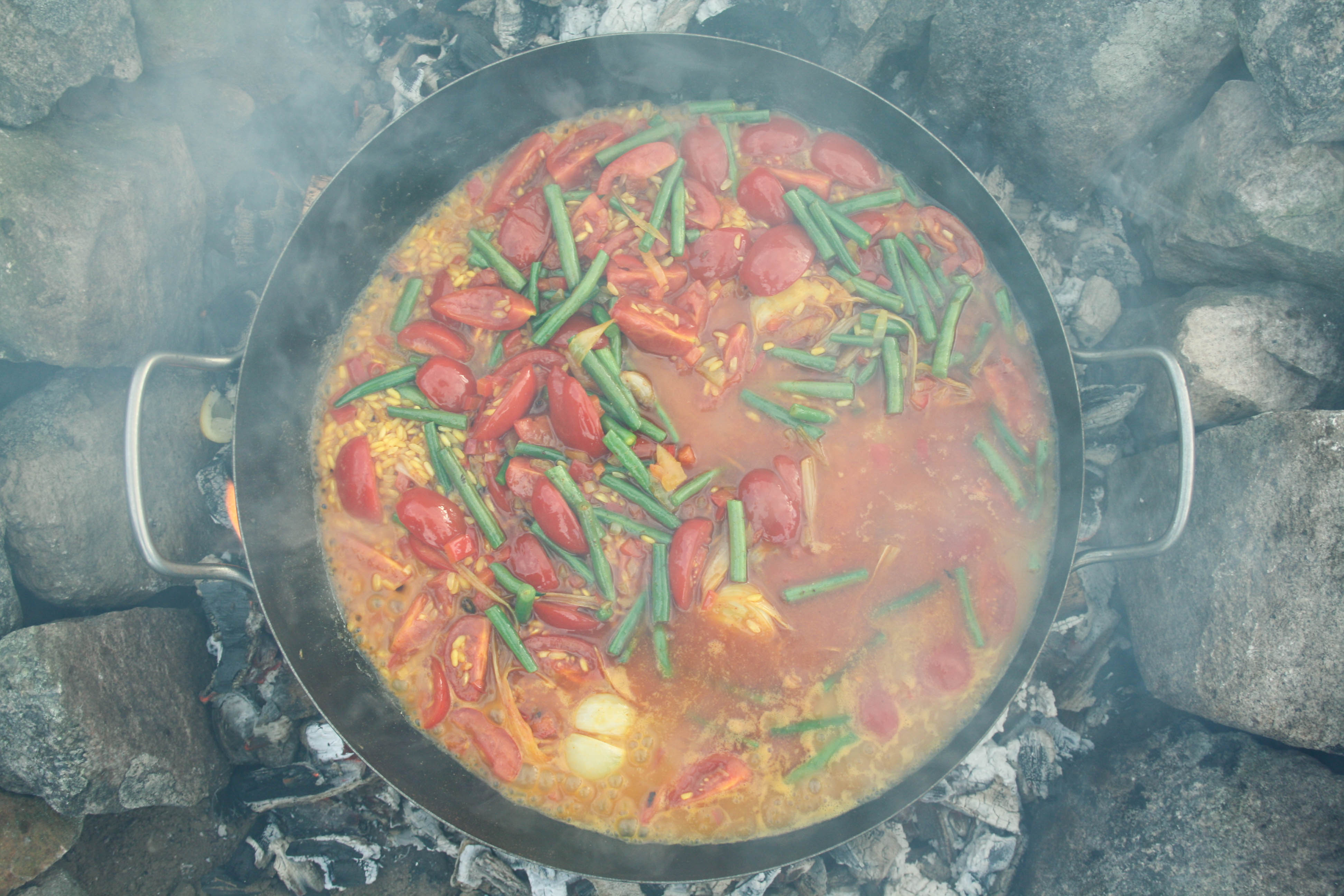 En Paella kan egentligen fyllas med lite av varje. Det vinnande konceptet är att blanda smaker, bryta av med andra smaker och låta det puttra fram länge. Här östes det på med bland annat: