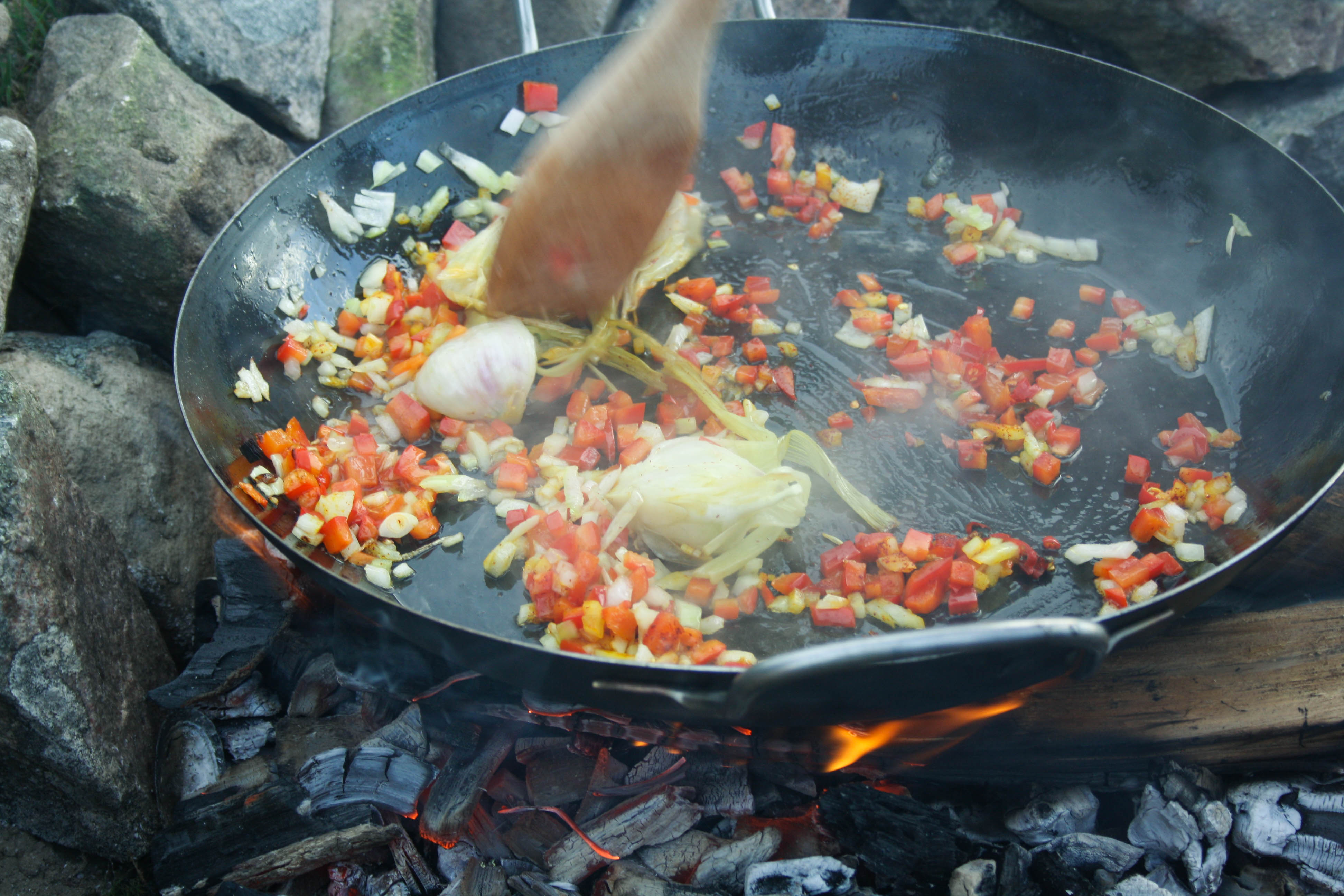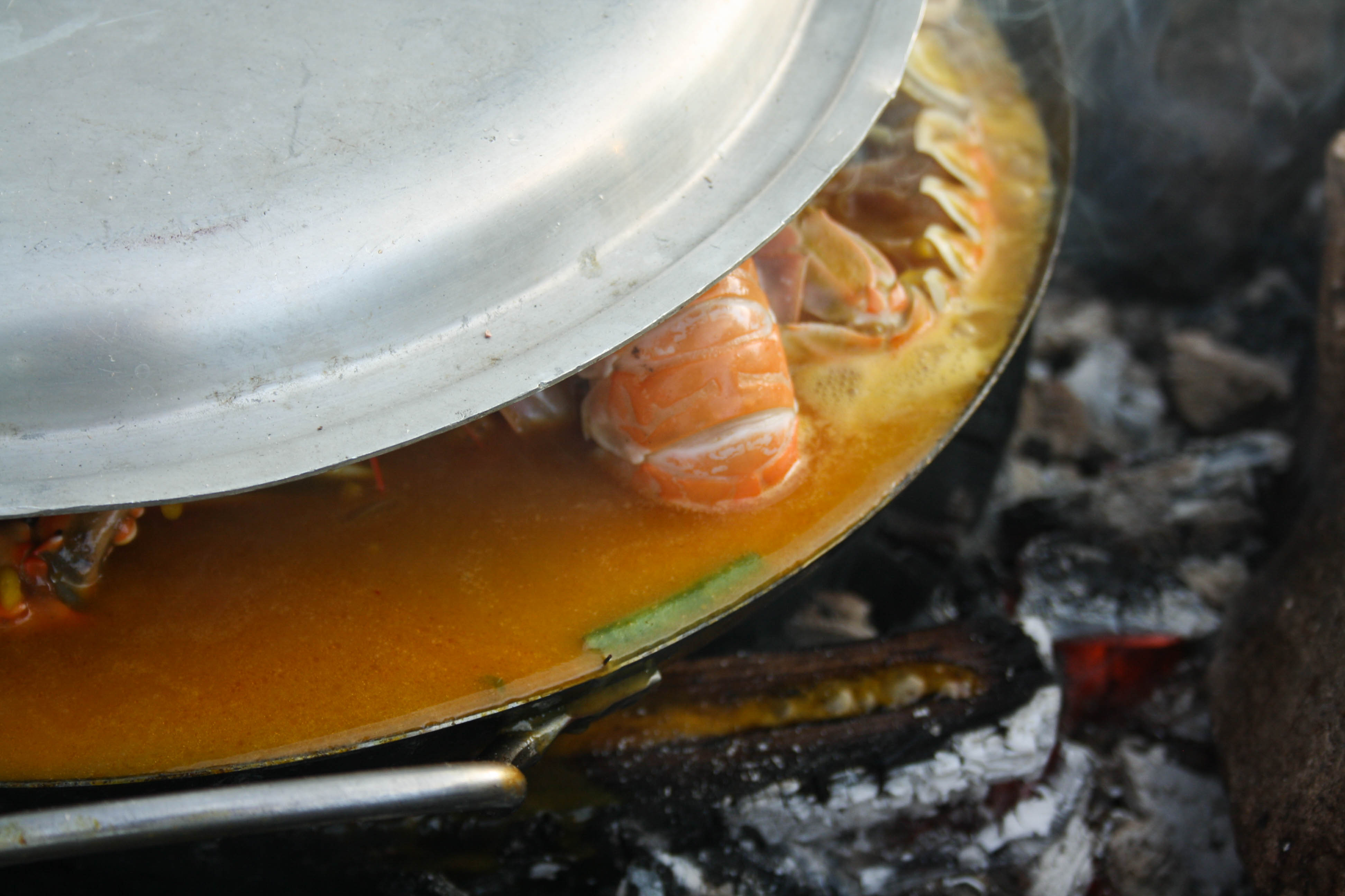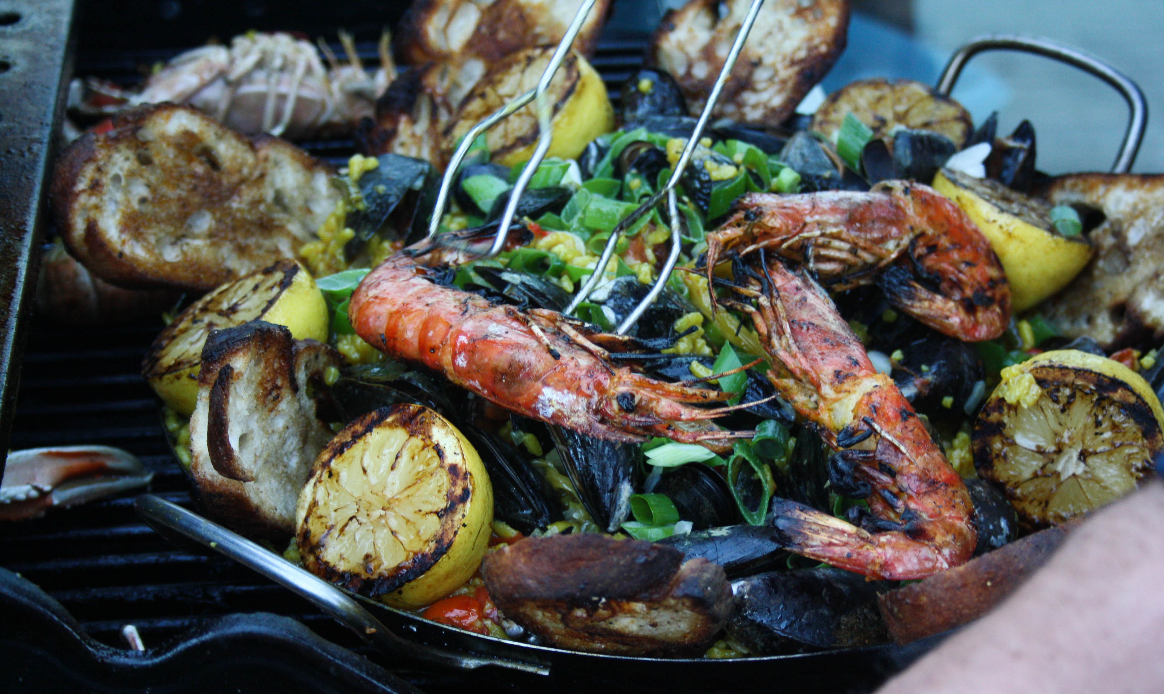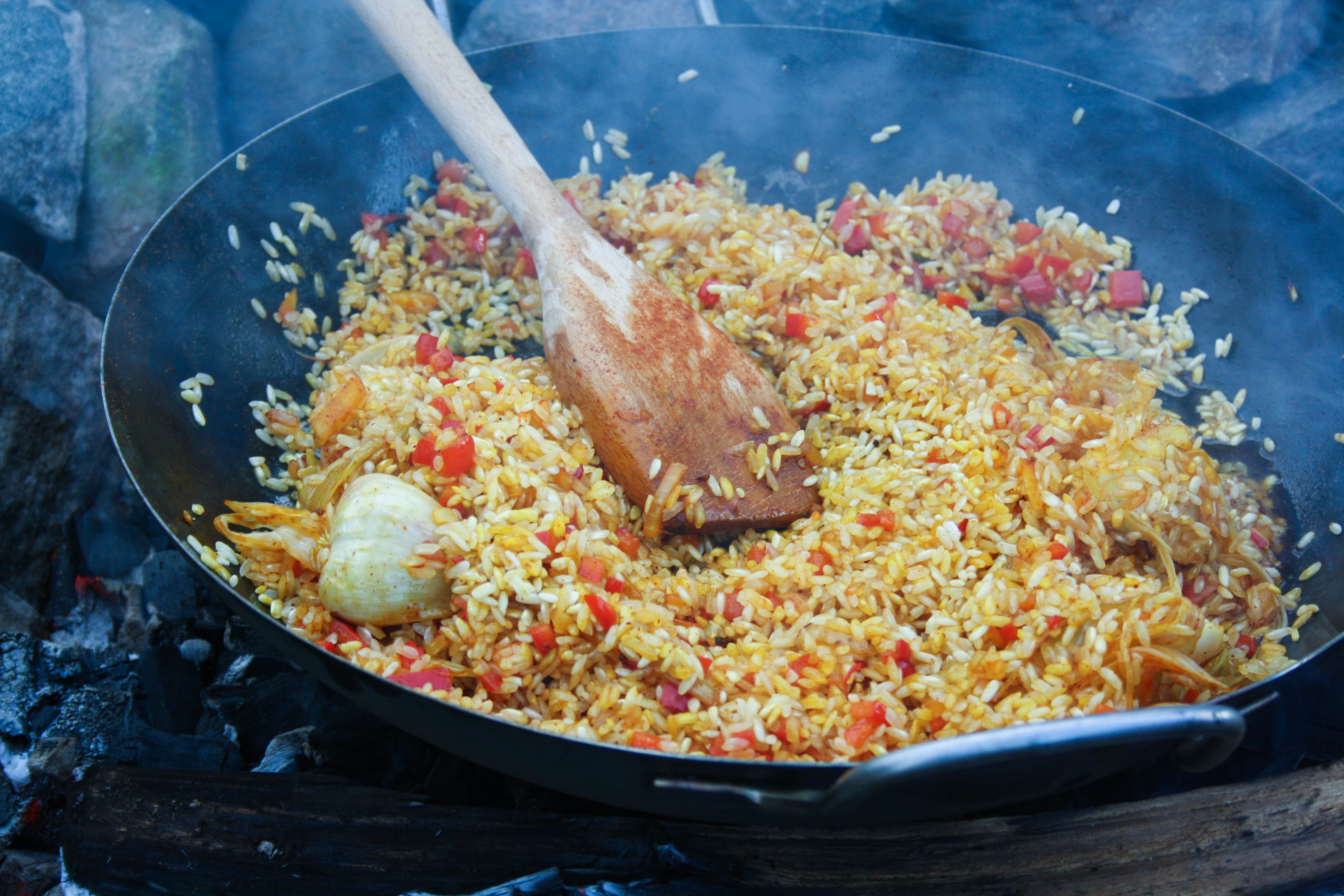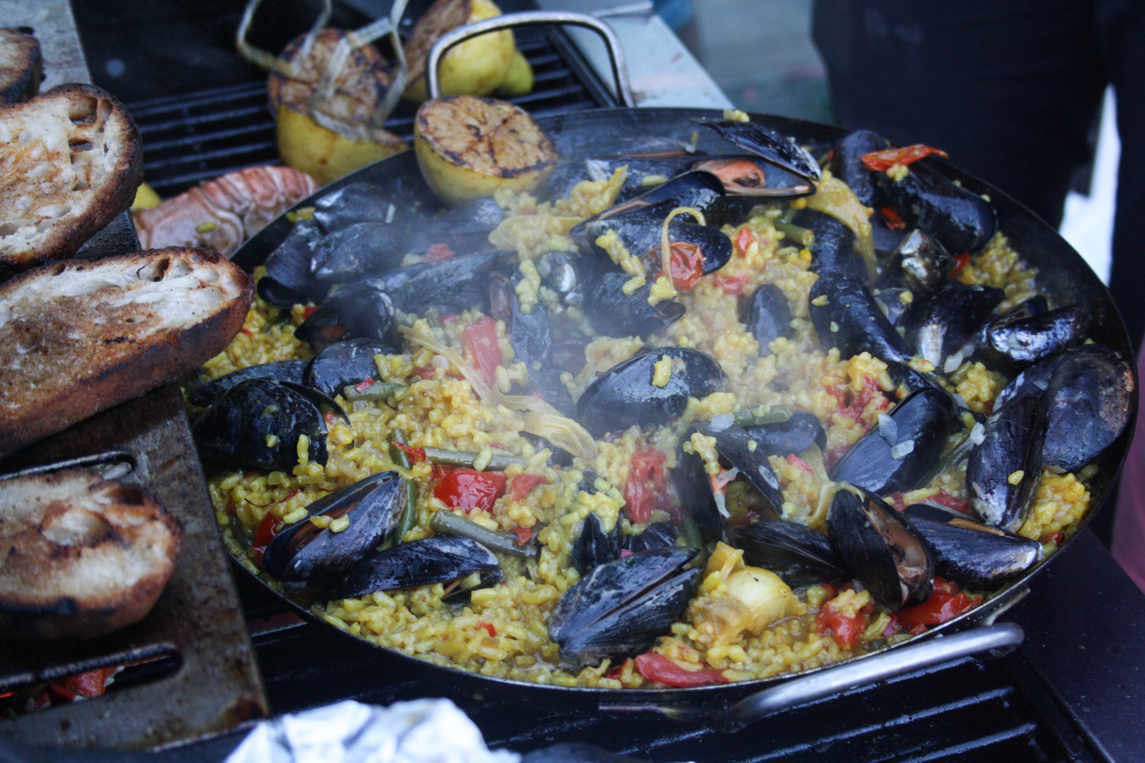 En Paella kan egentligen fyllas med lite av varje. Det vinnande konceptet är att blanda smaker, bryta av med andra smaker och låta det puttra fram länge. Här östes det på med bland annat: