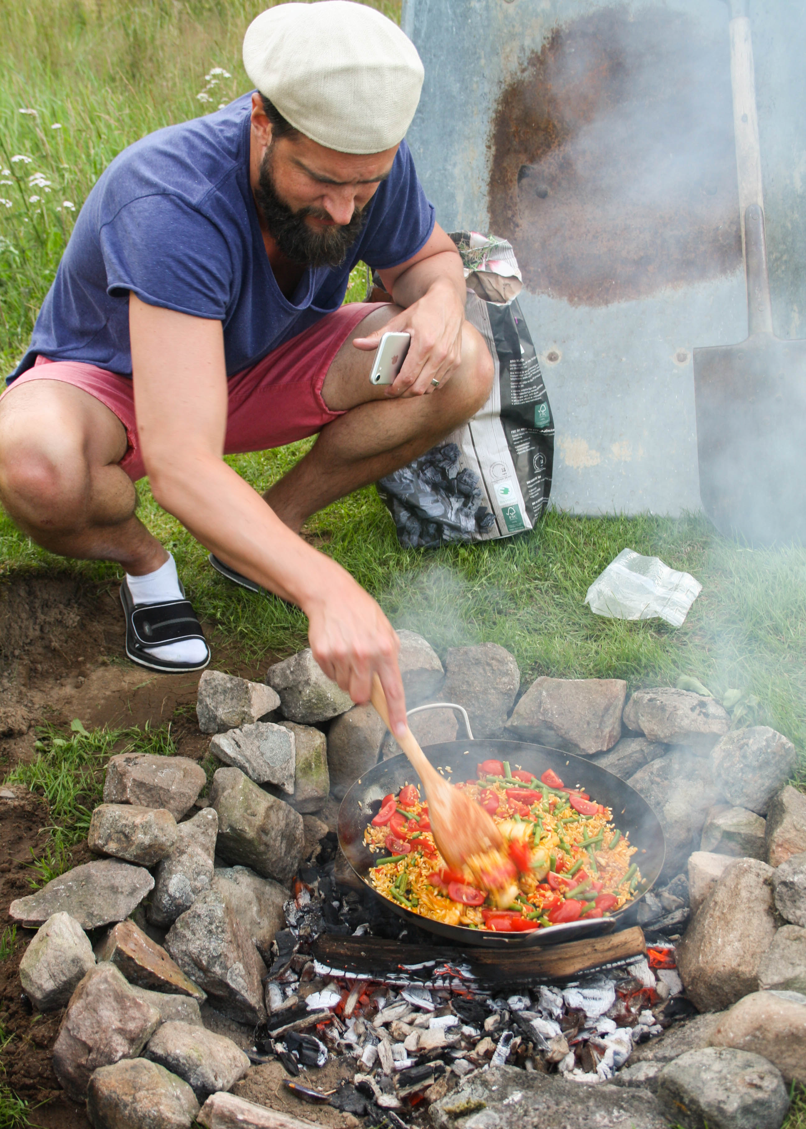 Man håller koll på vyn över Immeln och elden samtidigt som Magnus servar en med goda drinkar. Det är som när gubbar ”vaktar” grillen men en öl – fast vi gör det allesammans i flera dagar. Så bra kollokoncept!