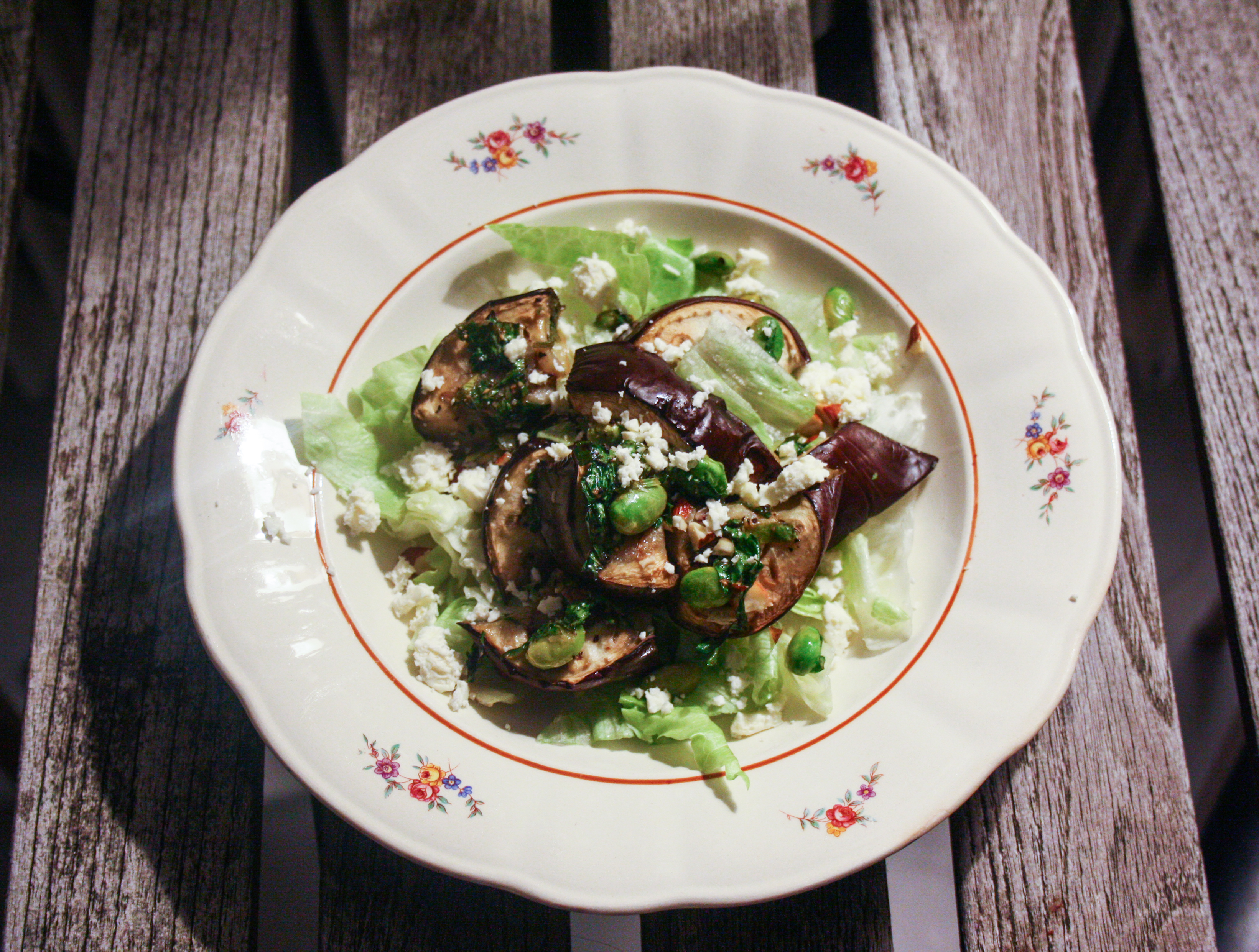 Och Aubergine – salta ur den och behåll skalet så tycker jag den blir bäst i smak, konsistens och färg. Här en enkel lunch eller lättare middag. Vill ni ha den matigare så adderar t.ex lite matvete, ägg eller gott bröd.