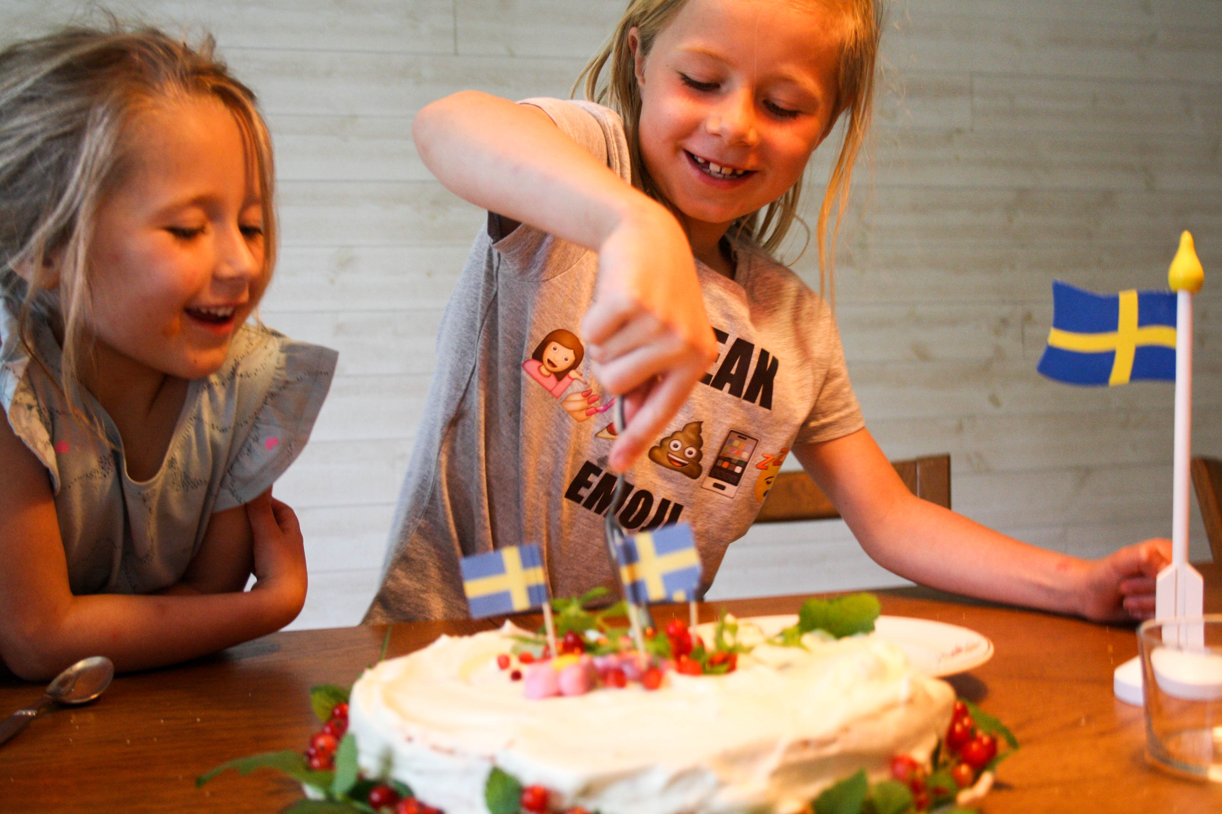 Jag och Bibbi bakade tårta till Elsies födelsedag igår. En något syrligare variant av gräddtårta med vinbär och smultron från trädgården.